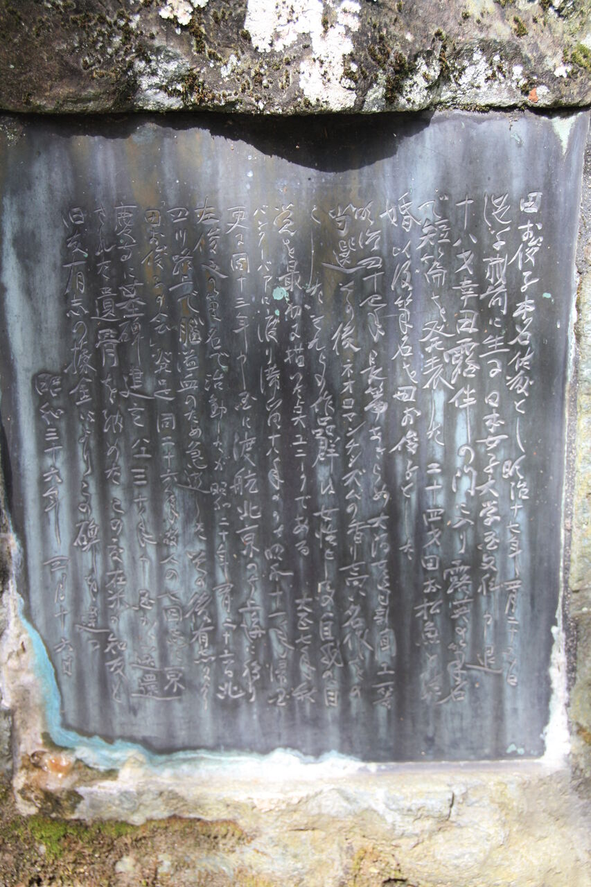 旧友の湯浅芳子、山原鶴等が当山に墓を設け、昭和 26年に 7回忌を営み、昭和 30年にこの文学碑を建てました。