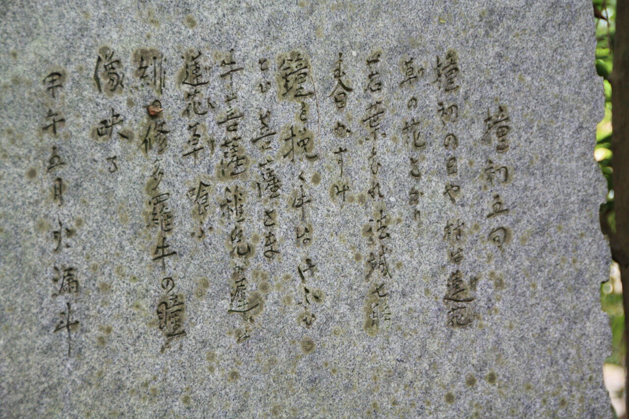 この記念碑には『初秋の一日』と宗演老師の手紙の文章の一部が刻まれており、”連れション”をしたと思われる位置に建てられています。