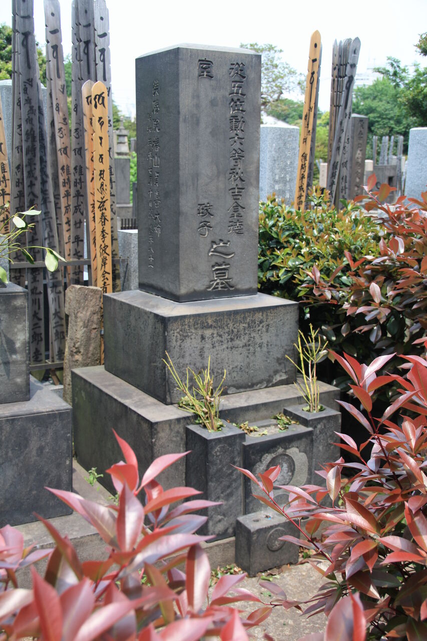 嗣子、塩谷時敏 ( 青山 ) 正面「簣山塩谷先生曁配 / 秋月恭懿両孺人墓」。