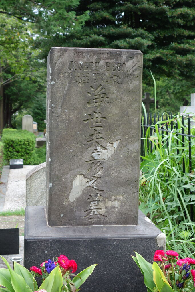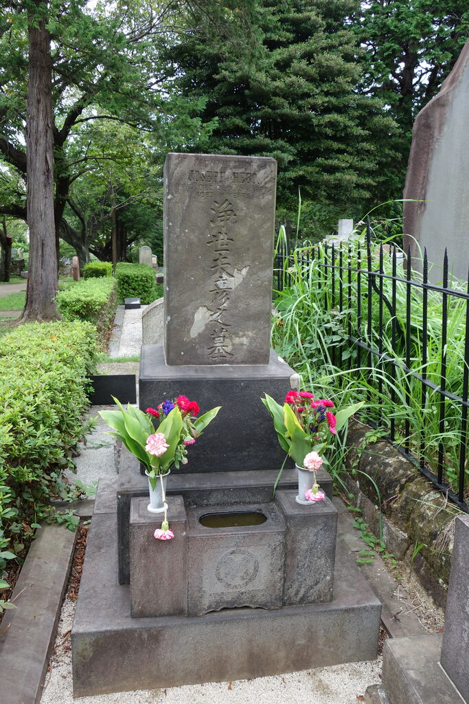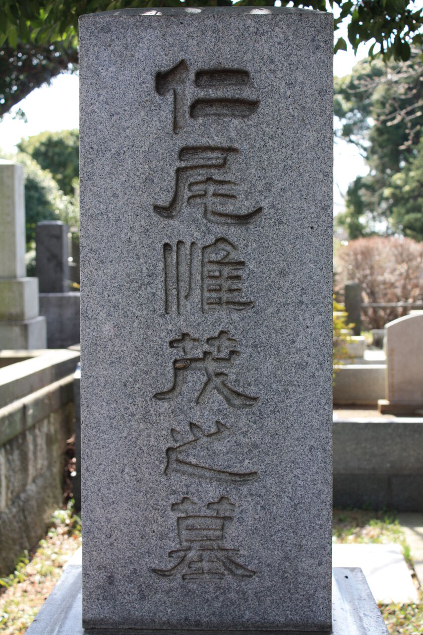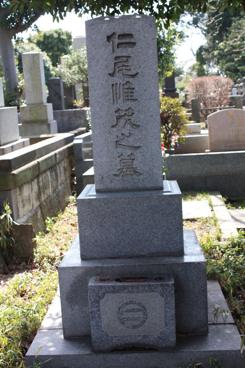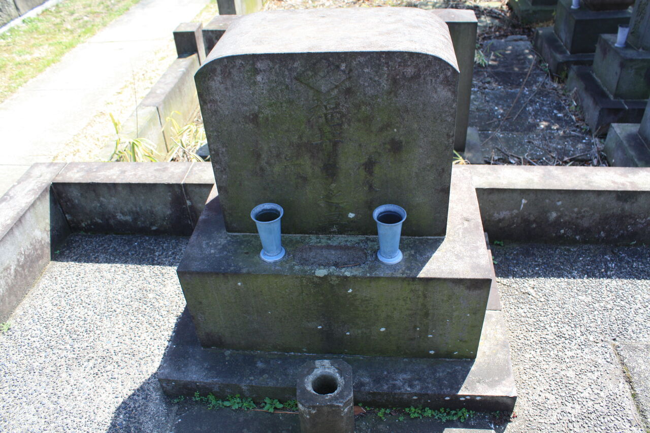 生垣の奥、神殿の横に御堀耕助の墓があります。