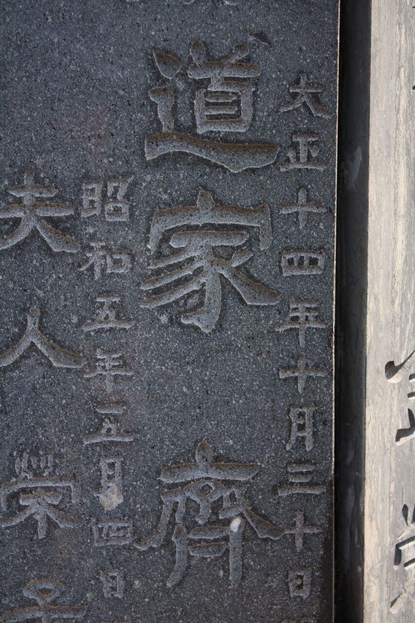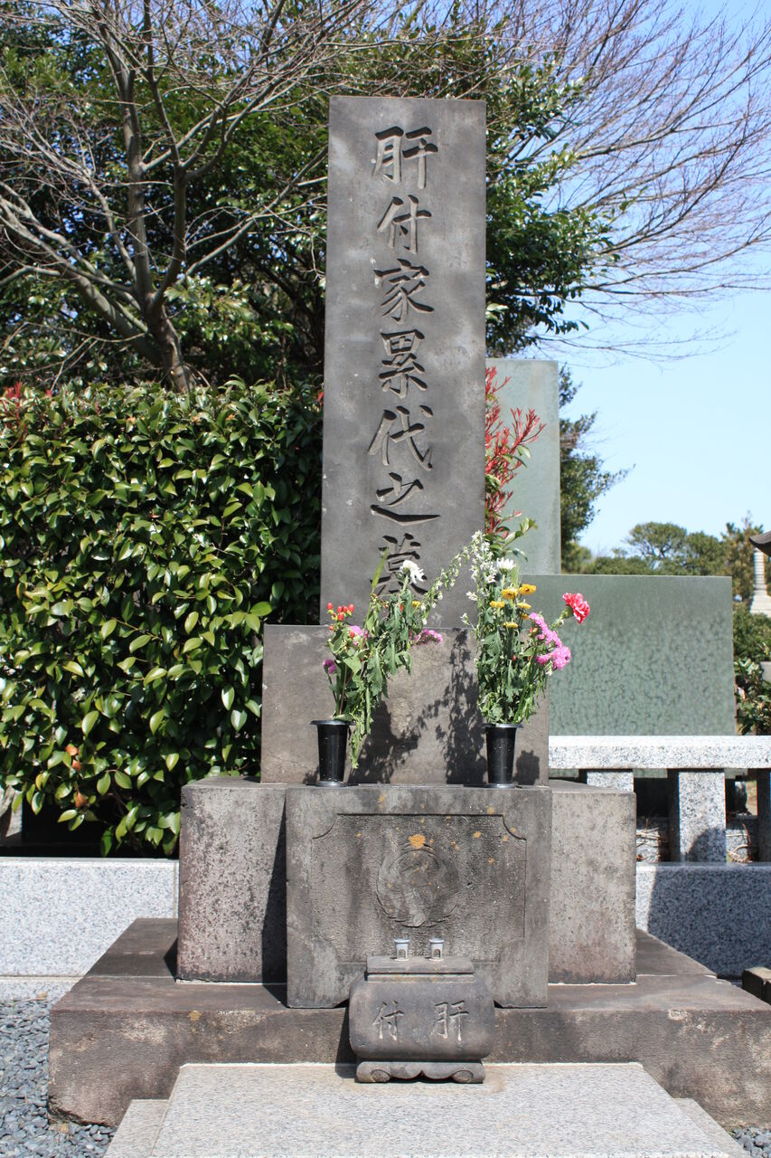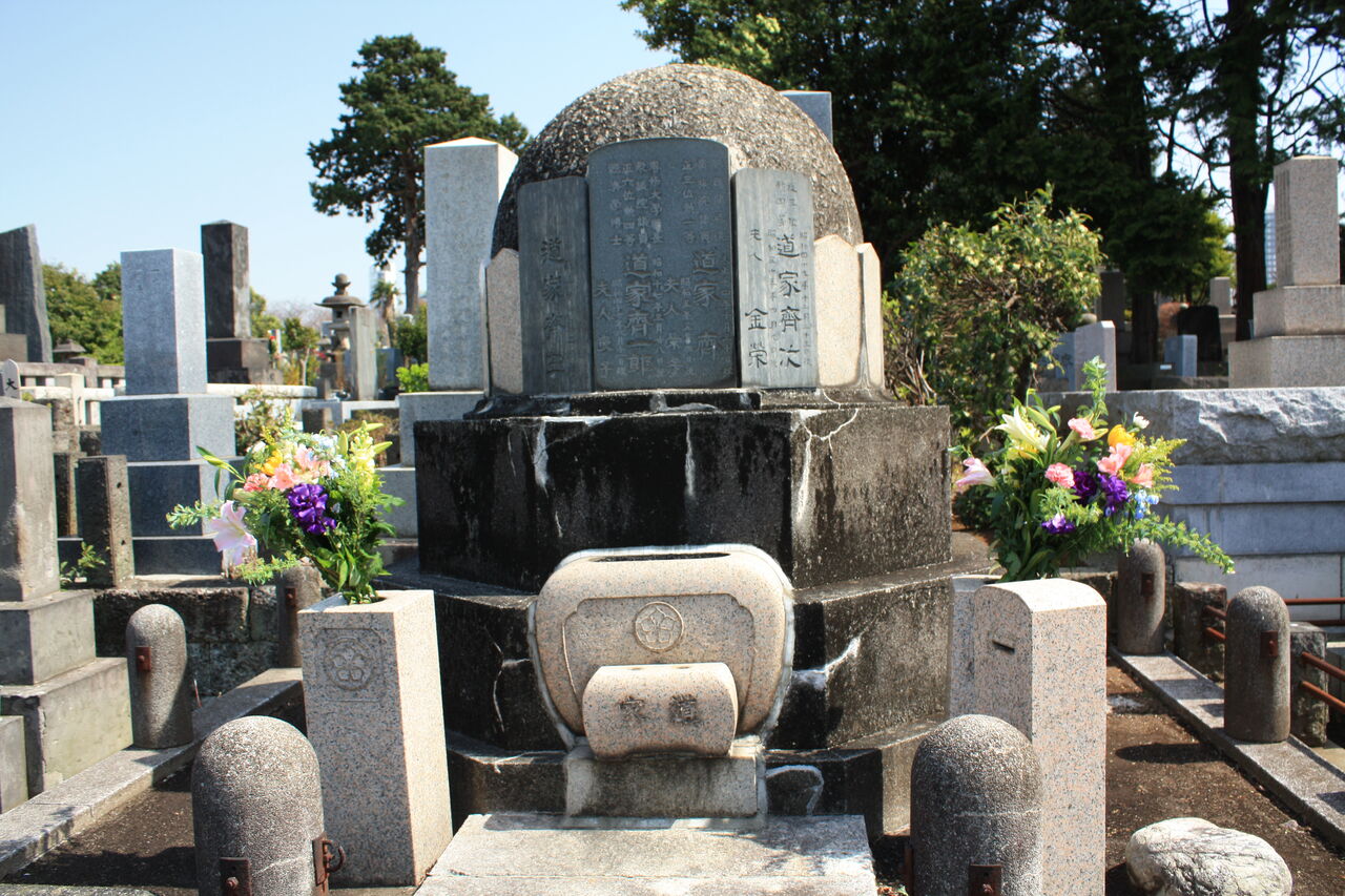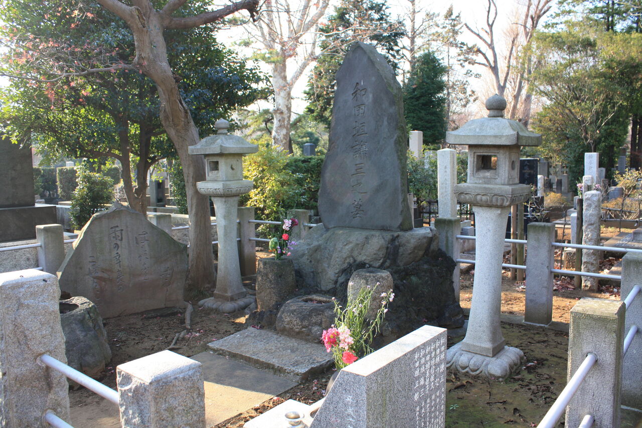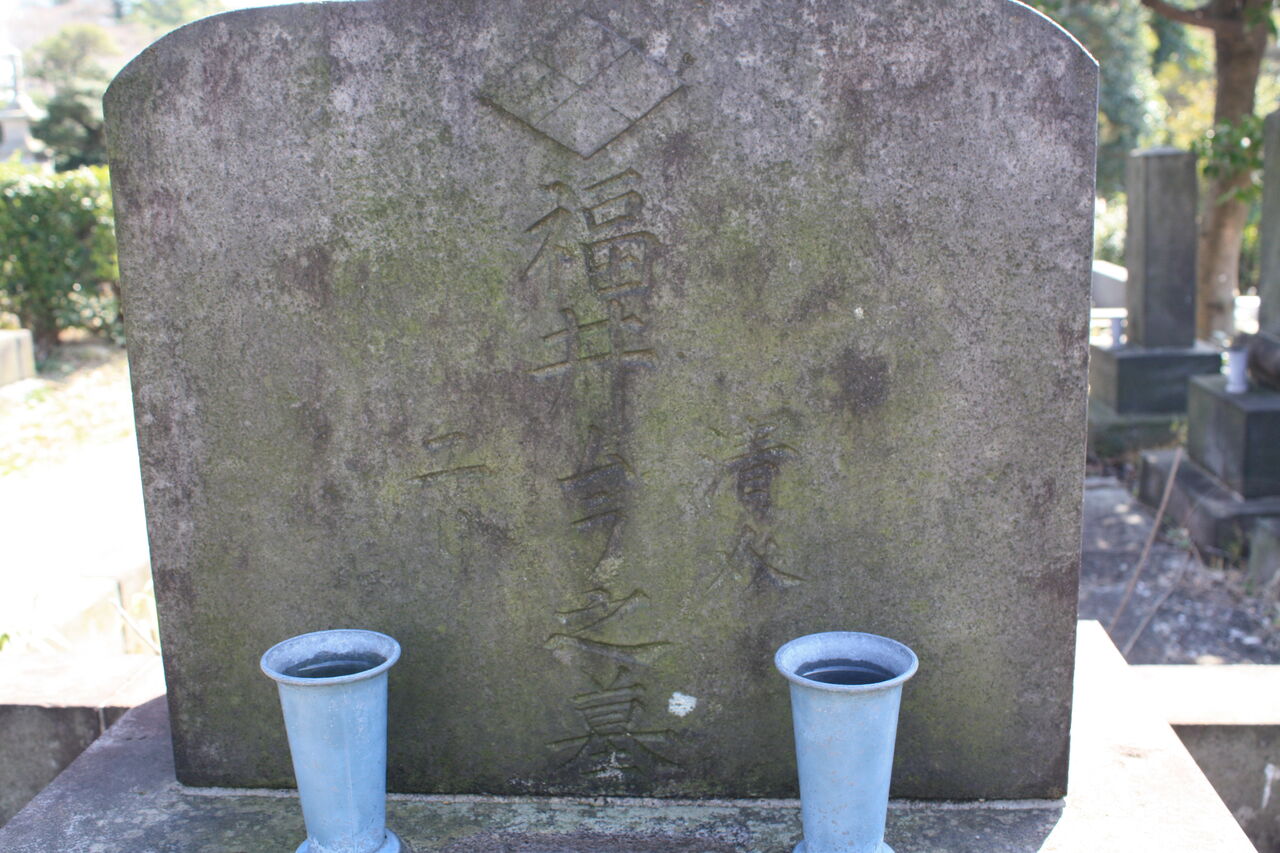 生垣の奥、神殿の横に御堀耕助の墓があります。