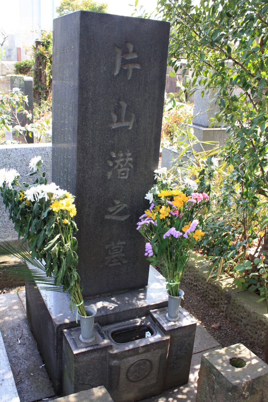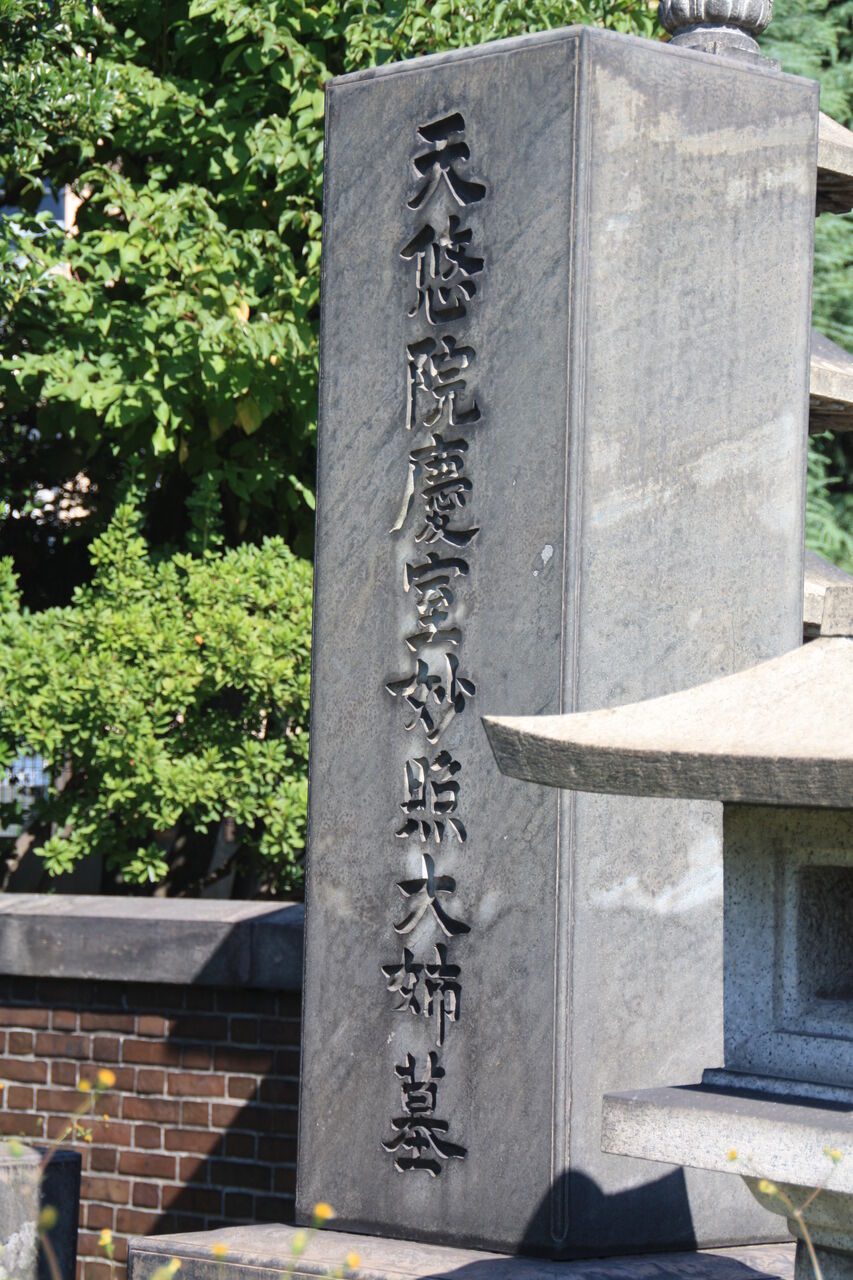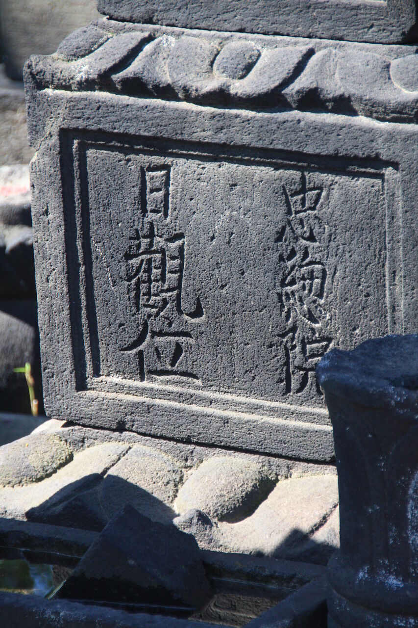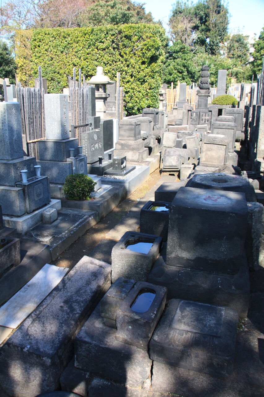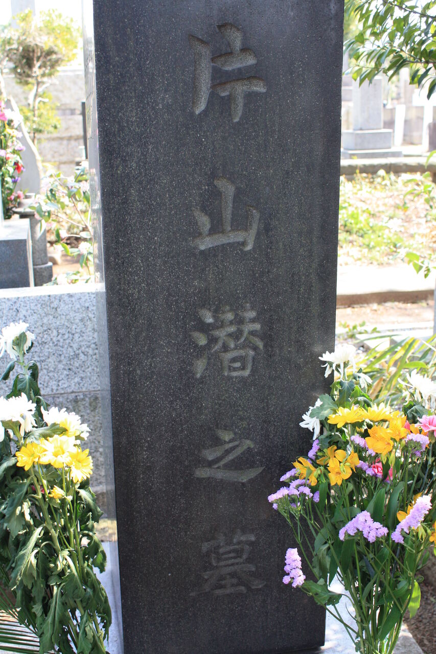 生垣の奥、神殿の横に御堀耕助の墓があります。