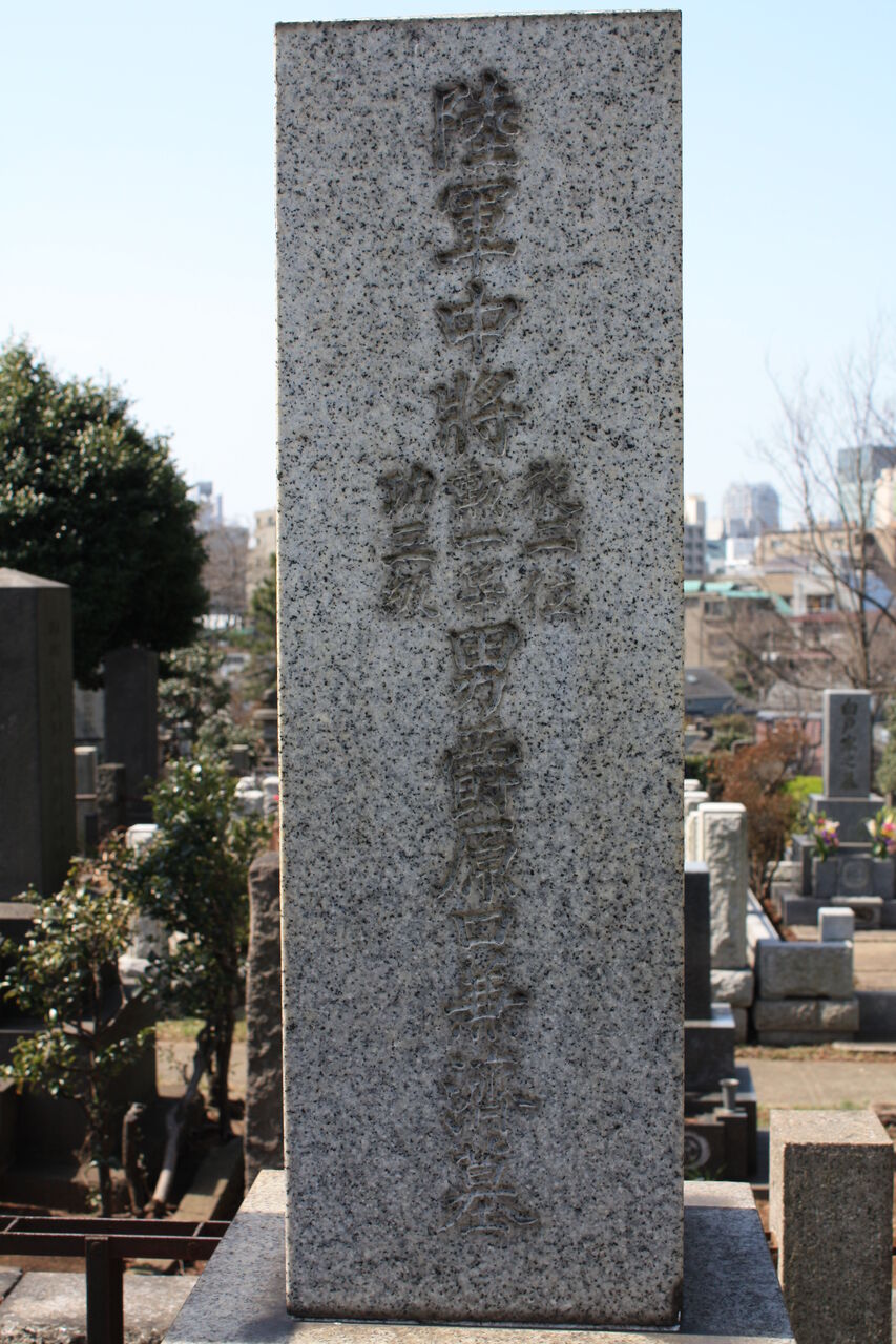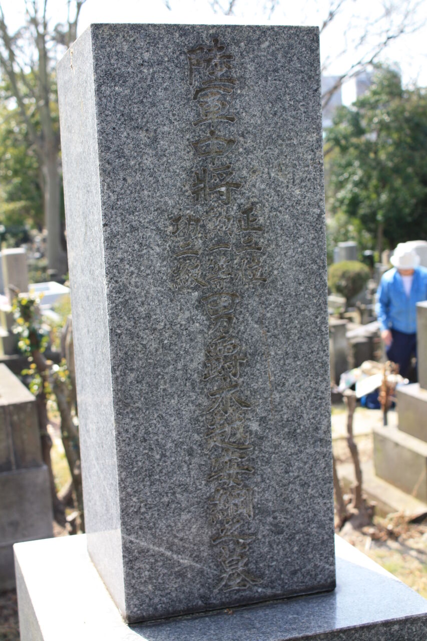 幅 30cm 角、高さ 107cm のいわゆる軍人墓と呼ばれている仏石に「贈正四位御堀耕助直方の墓」と彫られています。