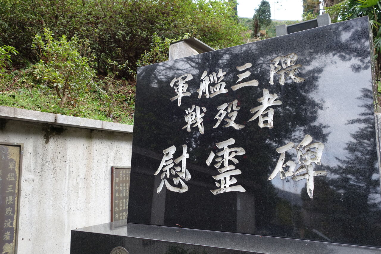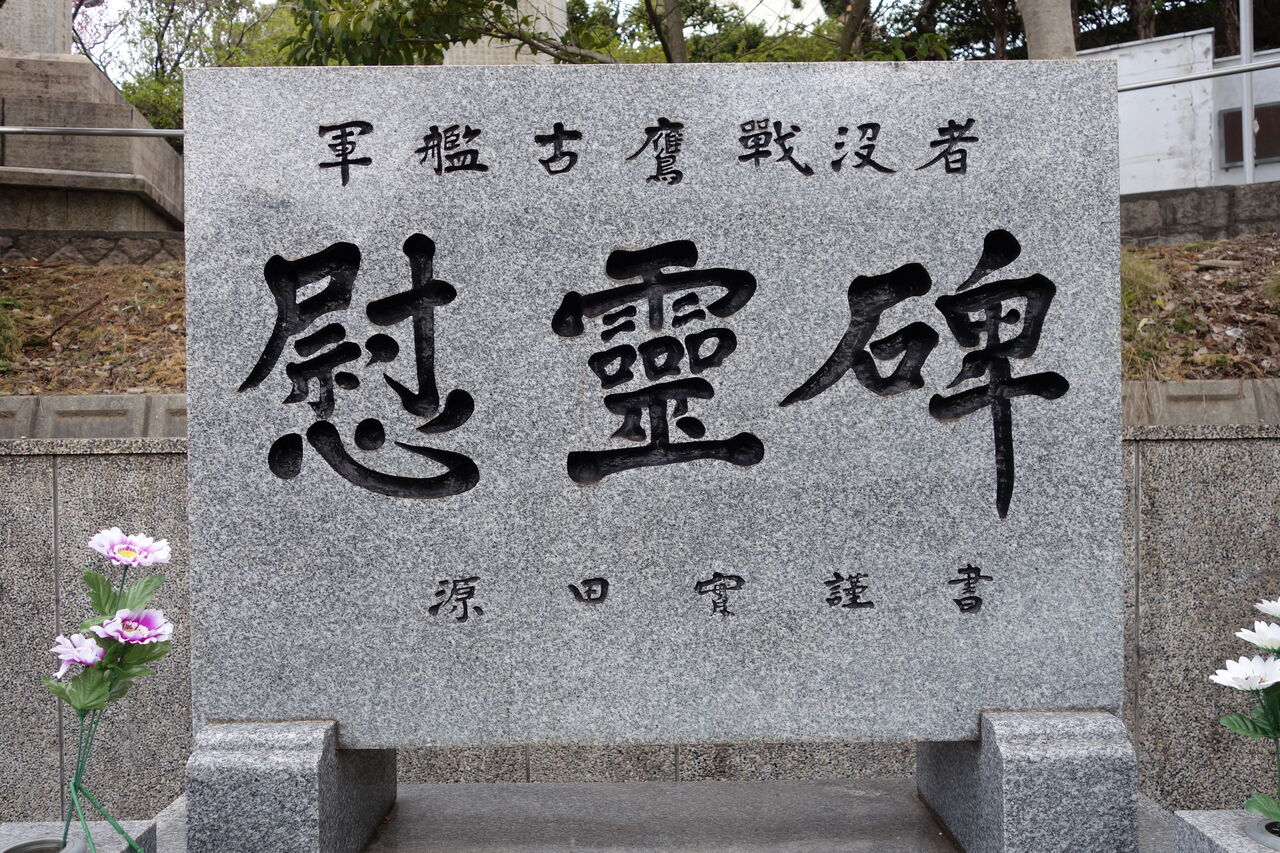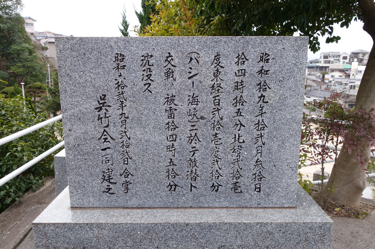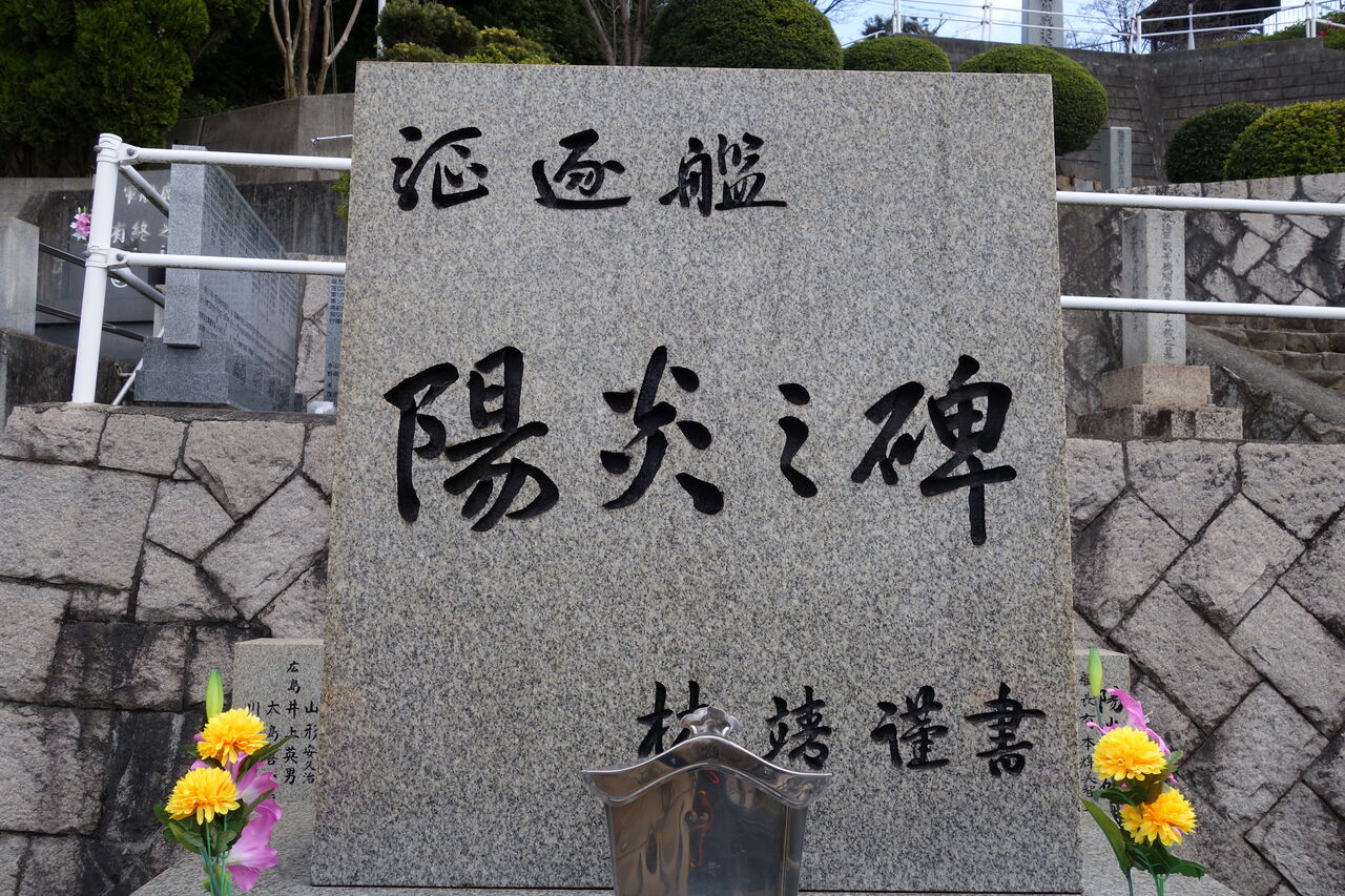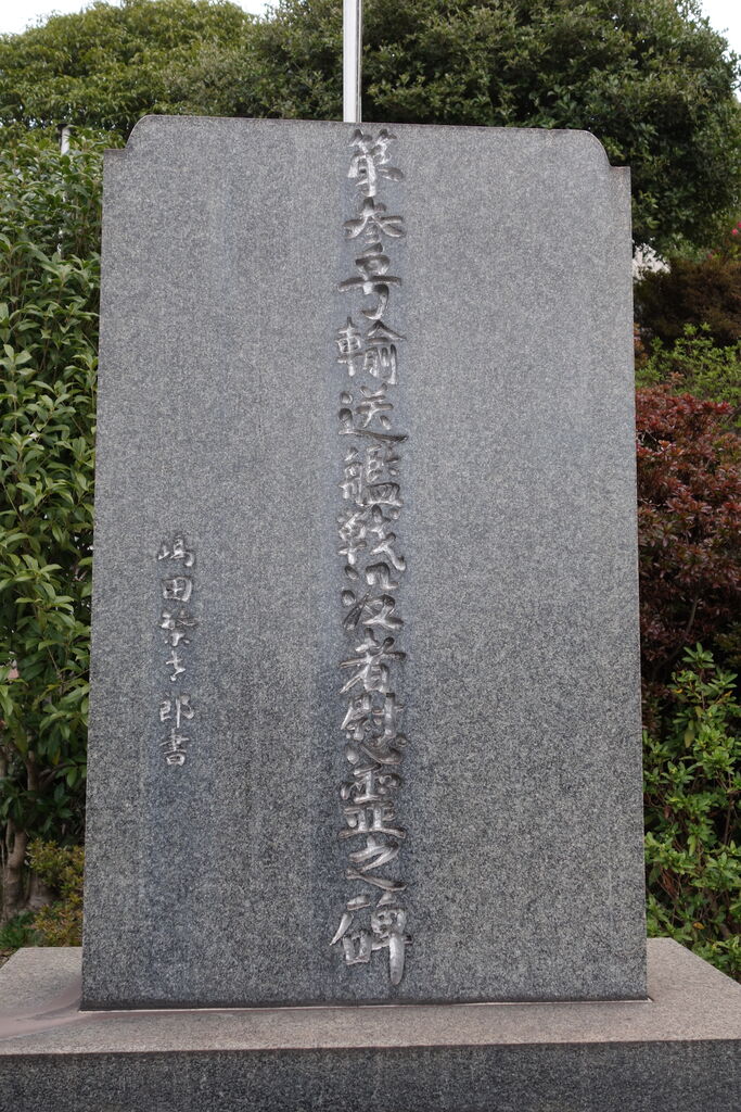 爾来27年平和と繁栄の時代を迎えた今日生存者相寄り、かねて念頭の慰霊碑を此所ゆかり地に建立し心からなる祈りを捧げて戦没者の霊を慰め且つこの地を訪れる人々と共に永遠の平和を希うものである。(航海長 歴 義一郎)