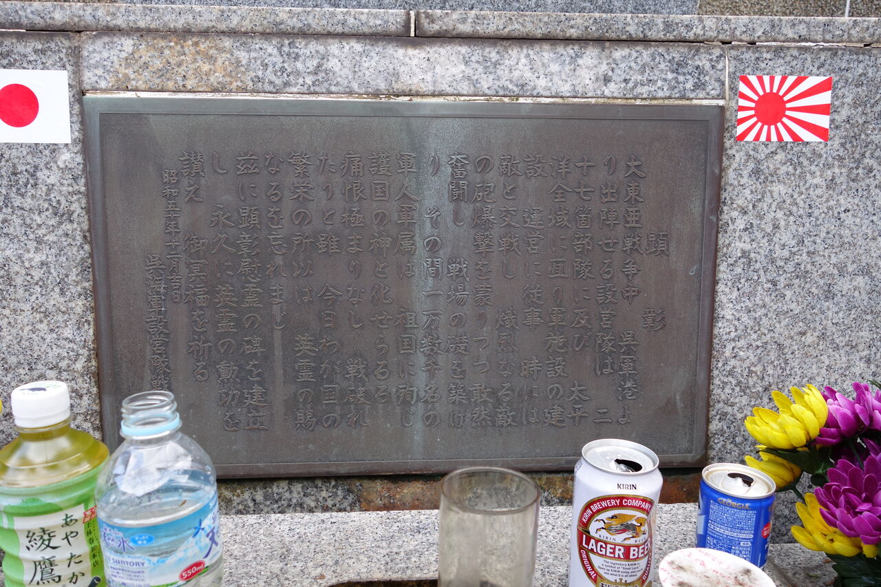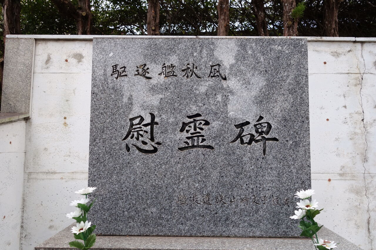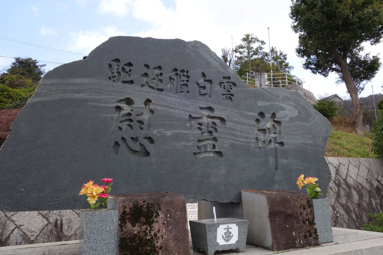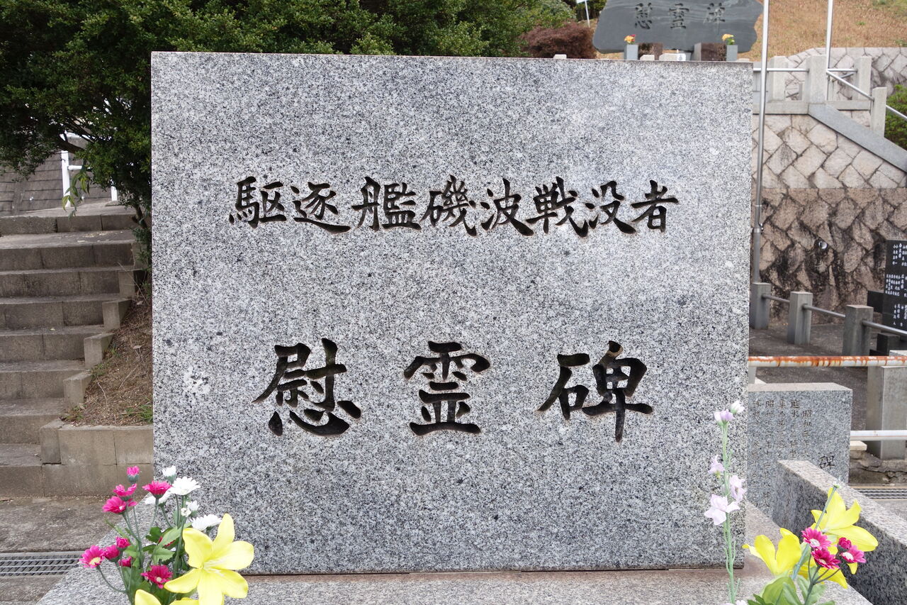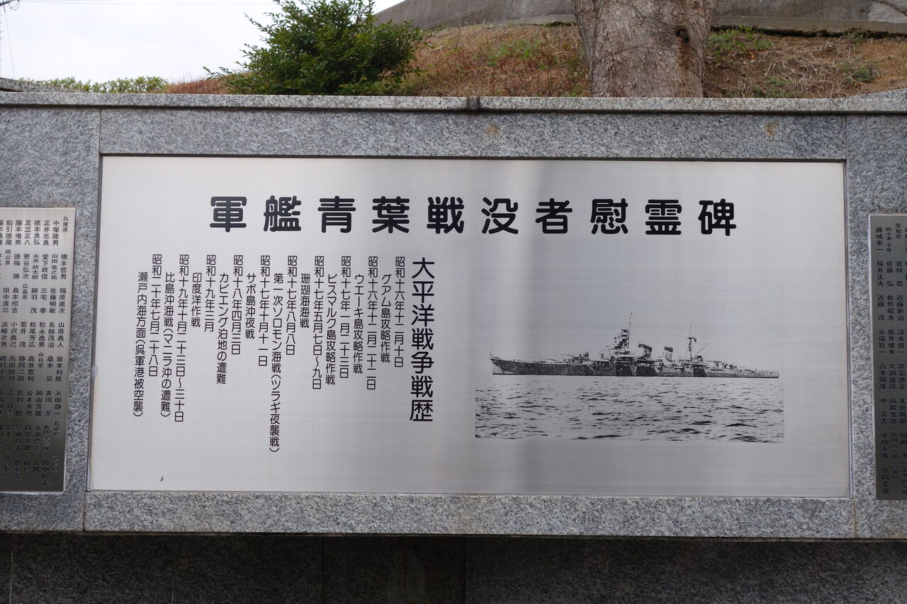 爾来27年平和と繁栄の時代を迎えた今日生存者相寄り、かねて念頭の慰霊碑を此所ゆかり地に建立し心からなる祈りを捧げて戦没者の霊を慰め且つこの地を訪れる人々と共に永遠の平和を希うものである。(航海長 歴 義一郎)