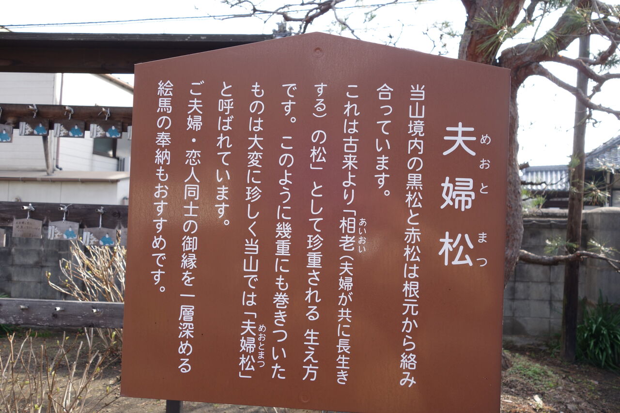 境内には黒松と赤松が絡み合った大変珍しい夫婦松もあります。
