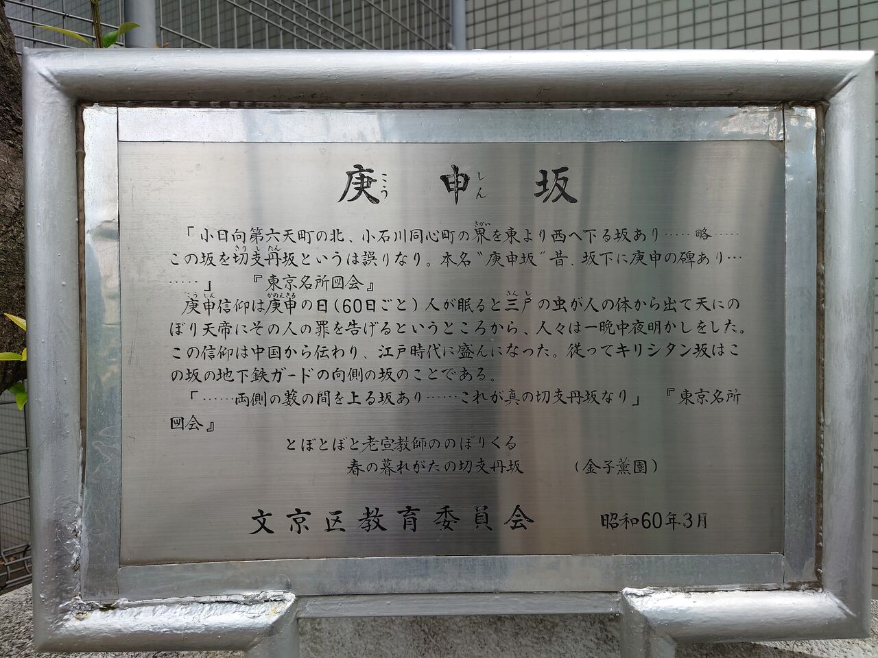 「・・・・・・両側の藪の間を上がる坂あり・・・・・・ これが真の切支丹 ( キリシタン ) 坂なり」『東京名所図会』