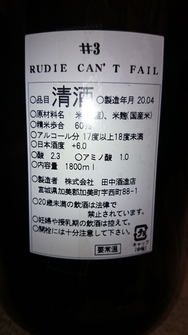 8279 田中酒造 : 生酛純米 しくじるなよ、ルーディー