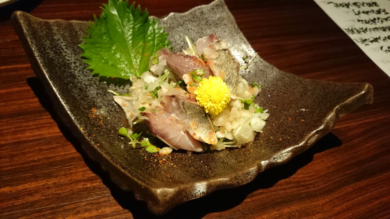 ⇧ 丸鯵の刺身 - 焼きすりおろし和え-