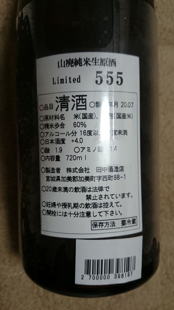 8275 田中酒造 : 山廃純米生原酒 Limited 555