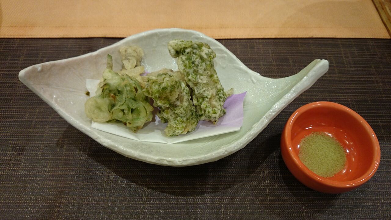 ⇧ 右側 こんにゃく 左側 下仁田ねぎの天ぷら