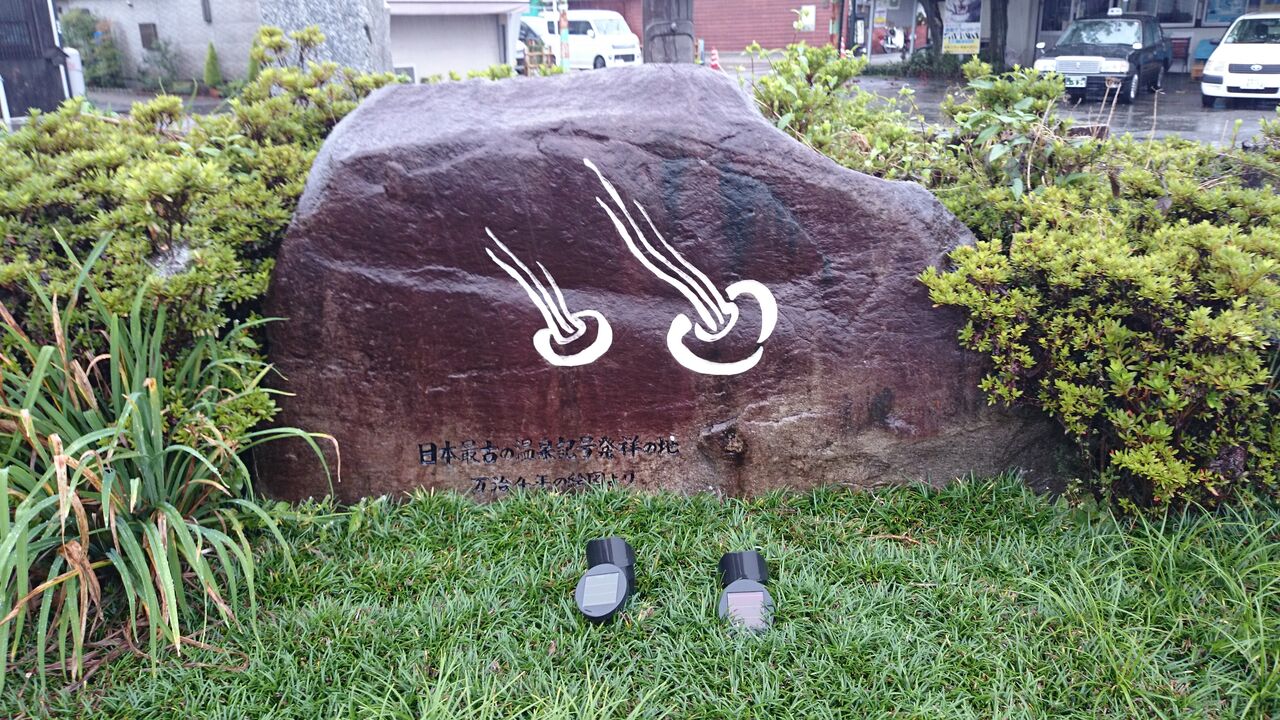 ⇧ 駅前に有った「温泉マーク発祥の地碑」