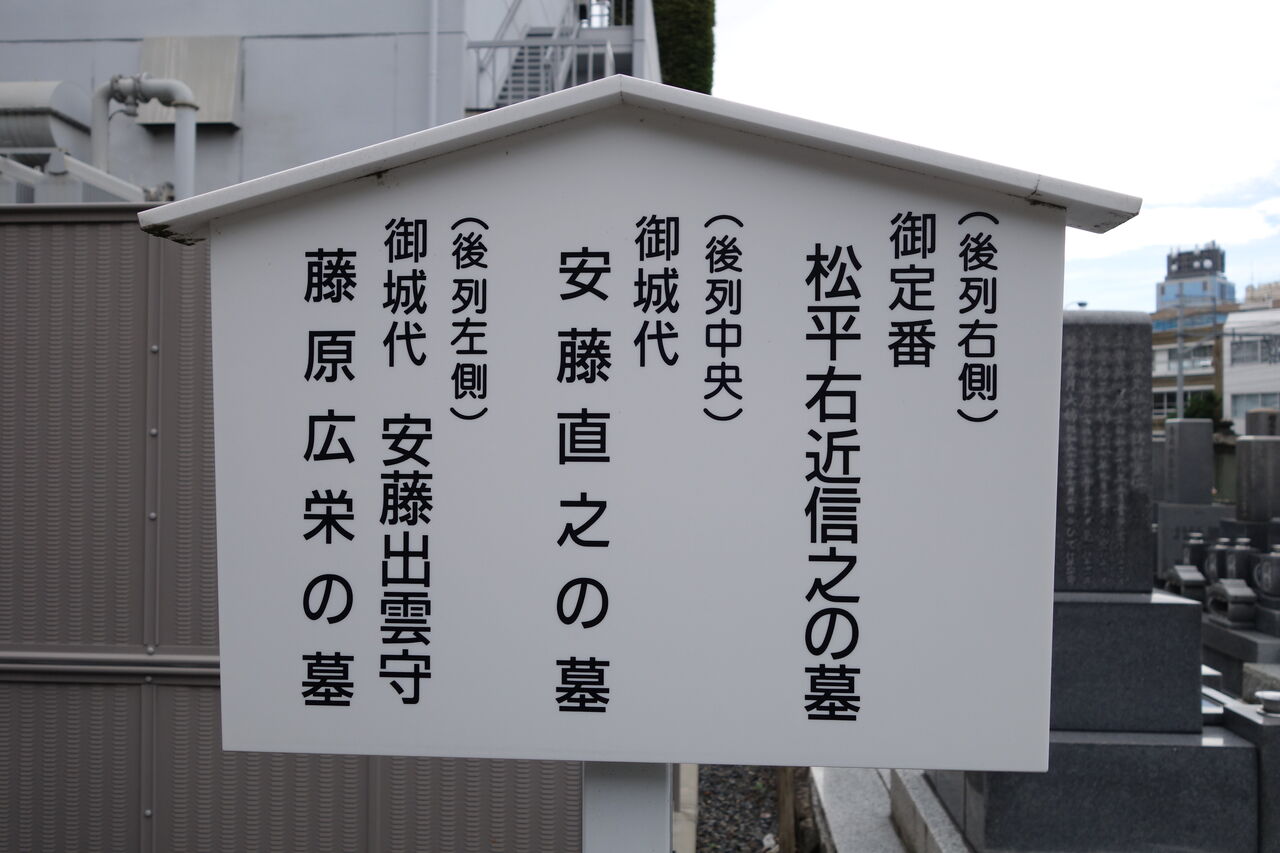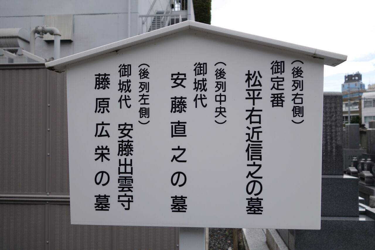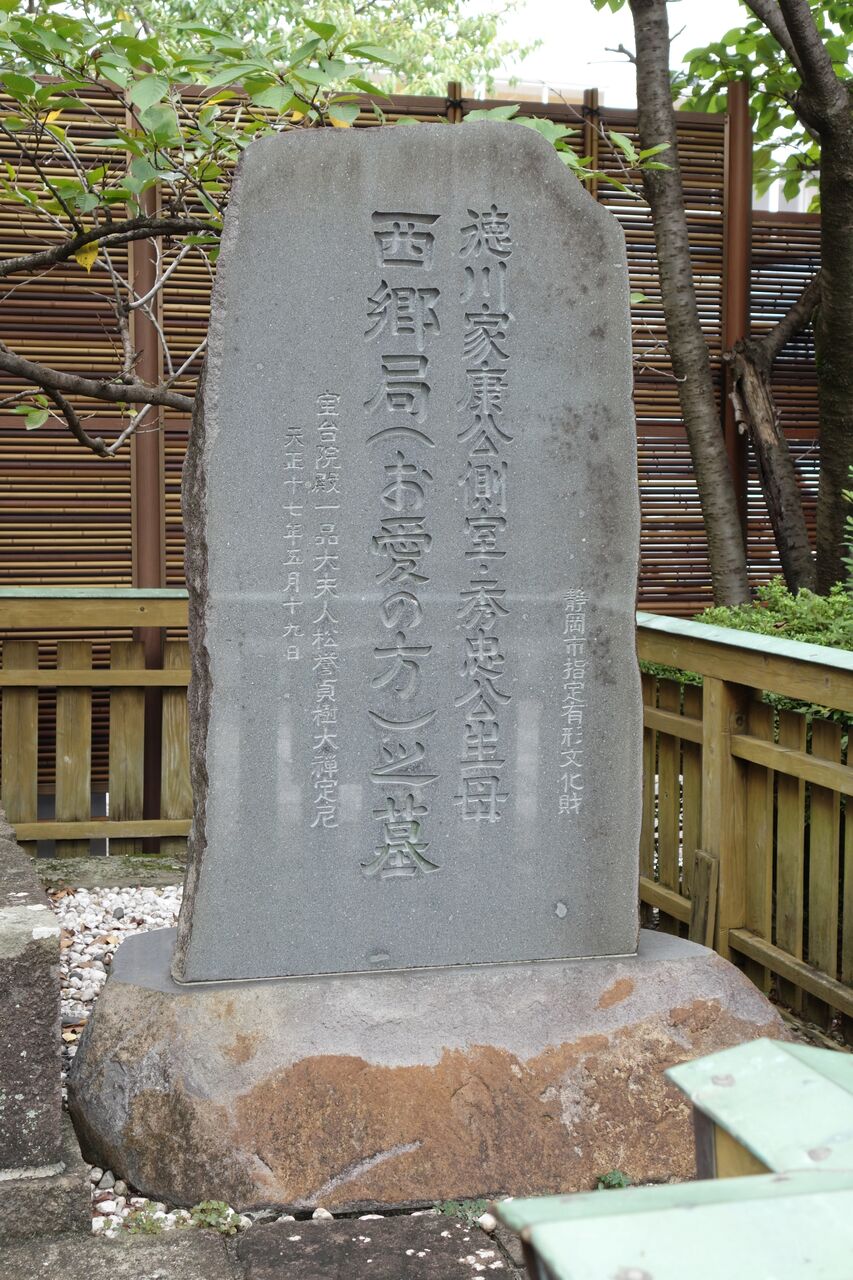 徳川家康の側室で徳川秀忠生母西郷の局(お愛の方)の墓がある。
