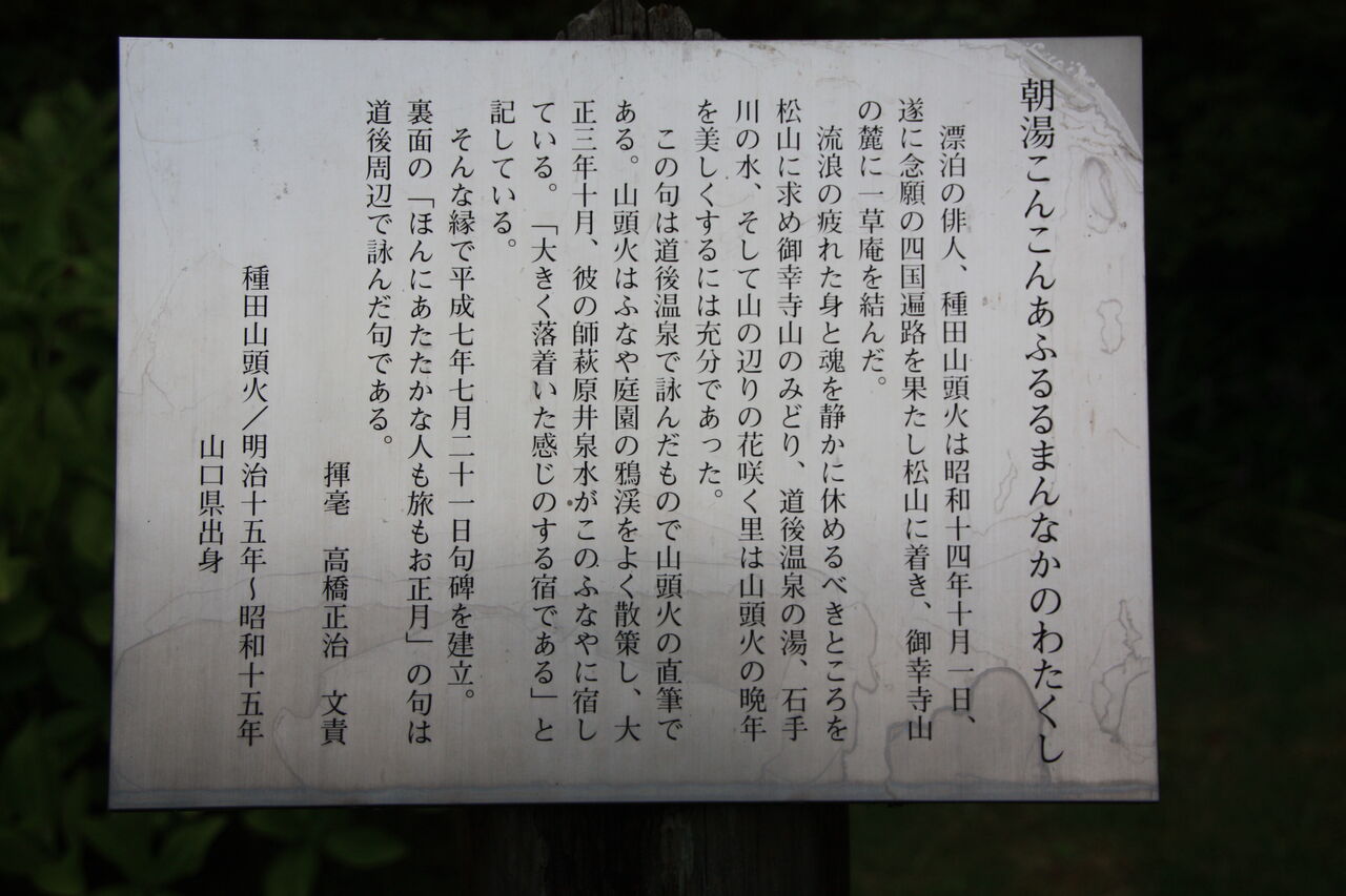 この句は道後温泉で詠んだもので山頭火の直筆である。