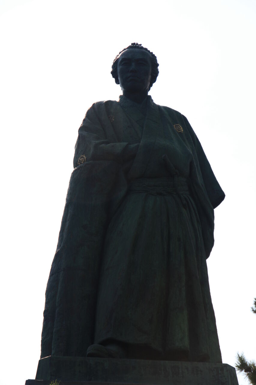 和服姿に懐手、ブーツ姿の龍馬は、はるか太平洋の彼方を見つめています。
