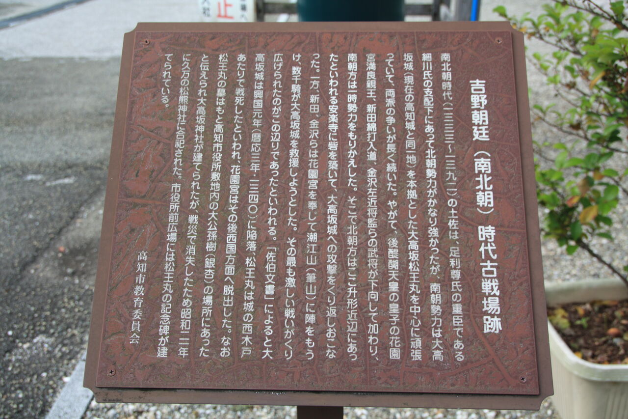 南北朝時代 ( 1333 ~ 1391 ) の土佐は足利尊氏の重臣である細川氏の支配下にあって北朝勢力がかなり強かったが、南朝勢力は大高坂城 ( 現在の高知城と同一地 ) を本拠とした大高坂松王丸を中心に頑張っていて、両派の争いが長く続いた。
