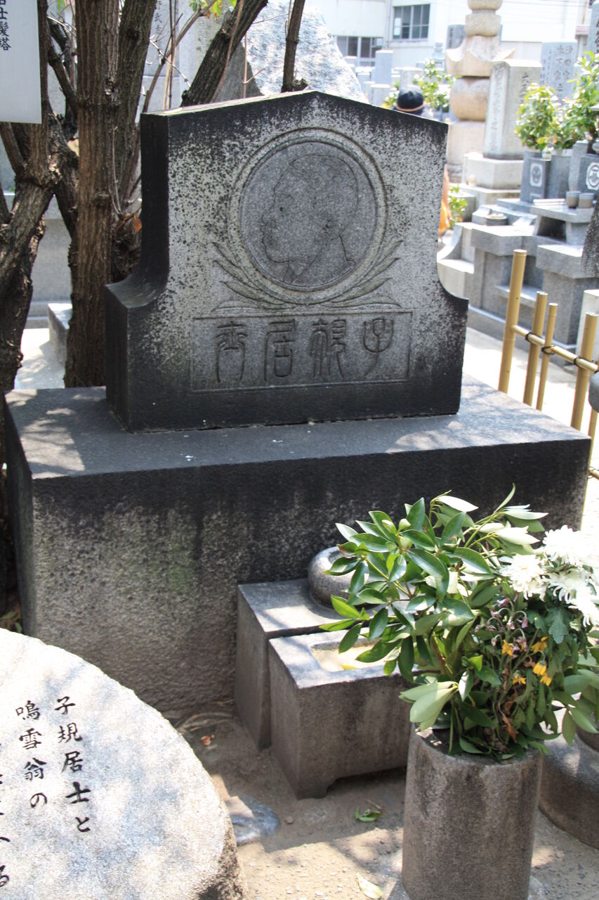 子規は明治三五年九月一九日死去、一〇月二八日ここで遺髪埋葬式と追悼会が行われ、三周忌に この遺髪塔が建立された。