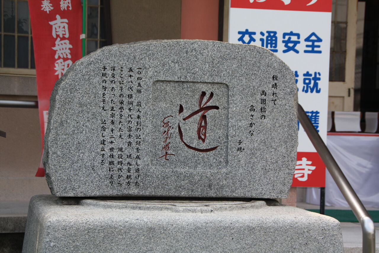 ここにその栄誉をたたえ 現役時代から親交のあった正宗寺 第二十世住職により
