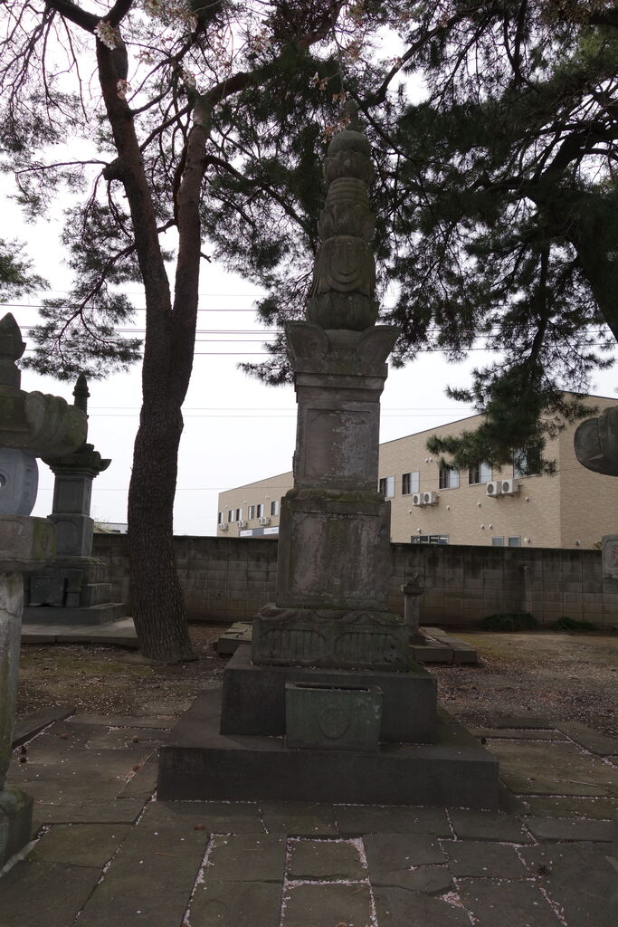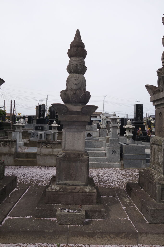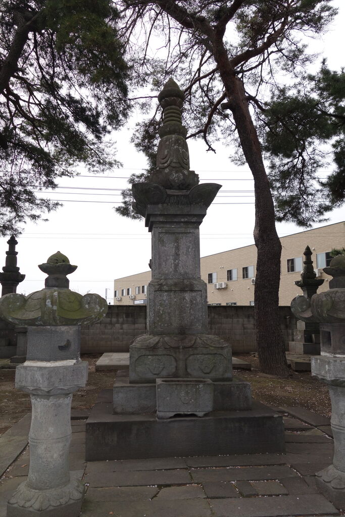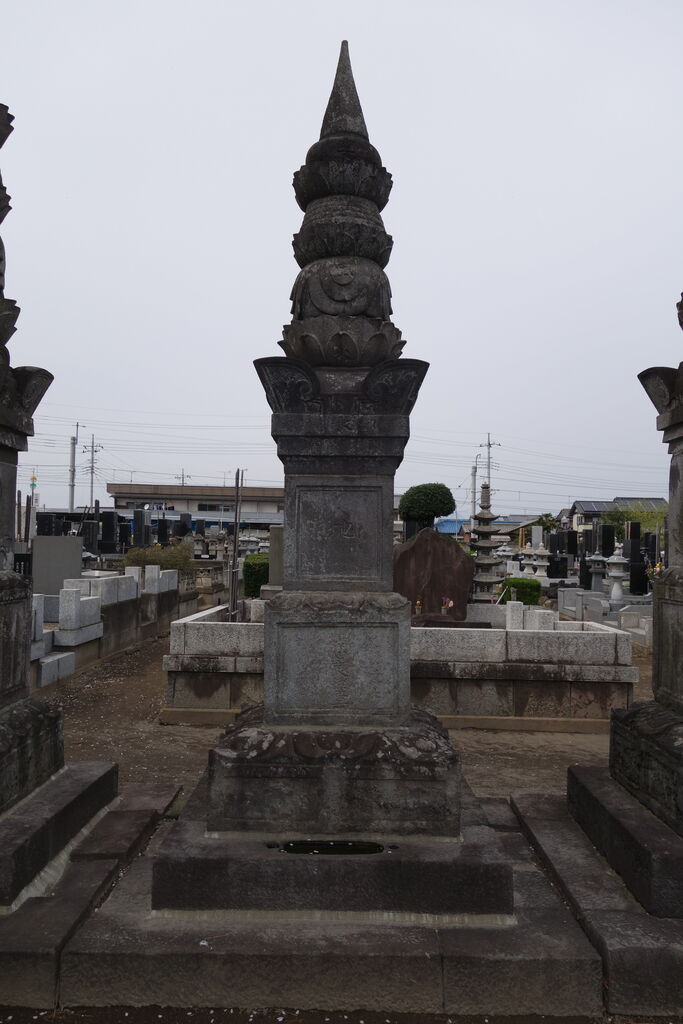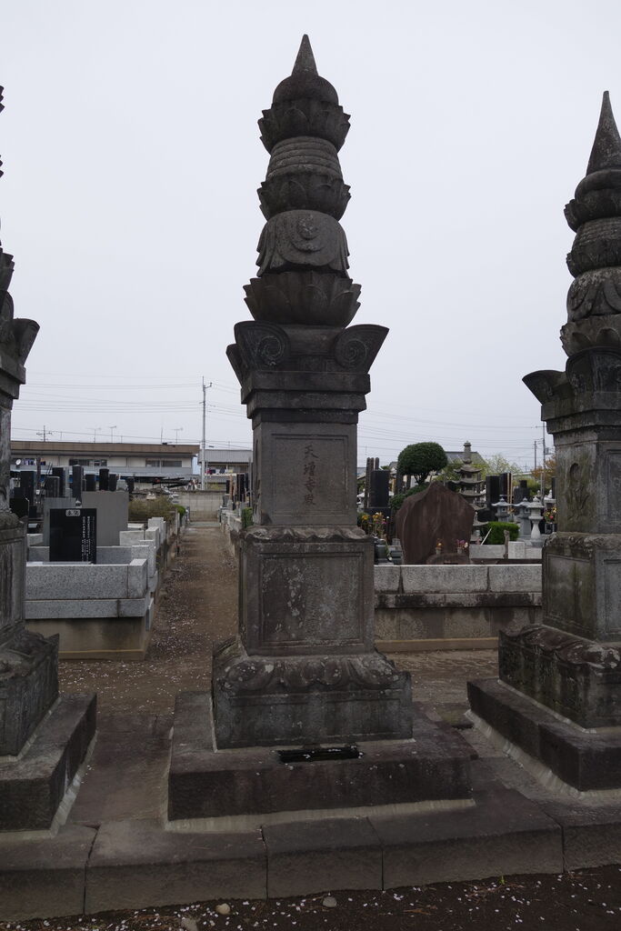 現在「天増寺殿快巌当慶居士」と法名を刻した宝篋印塔が墓地のほぼ正面に建っています。