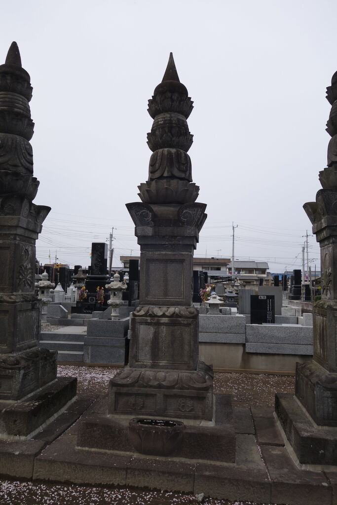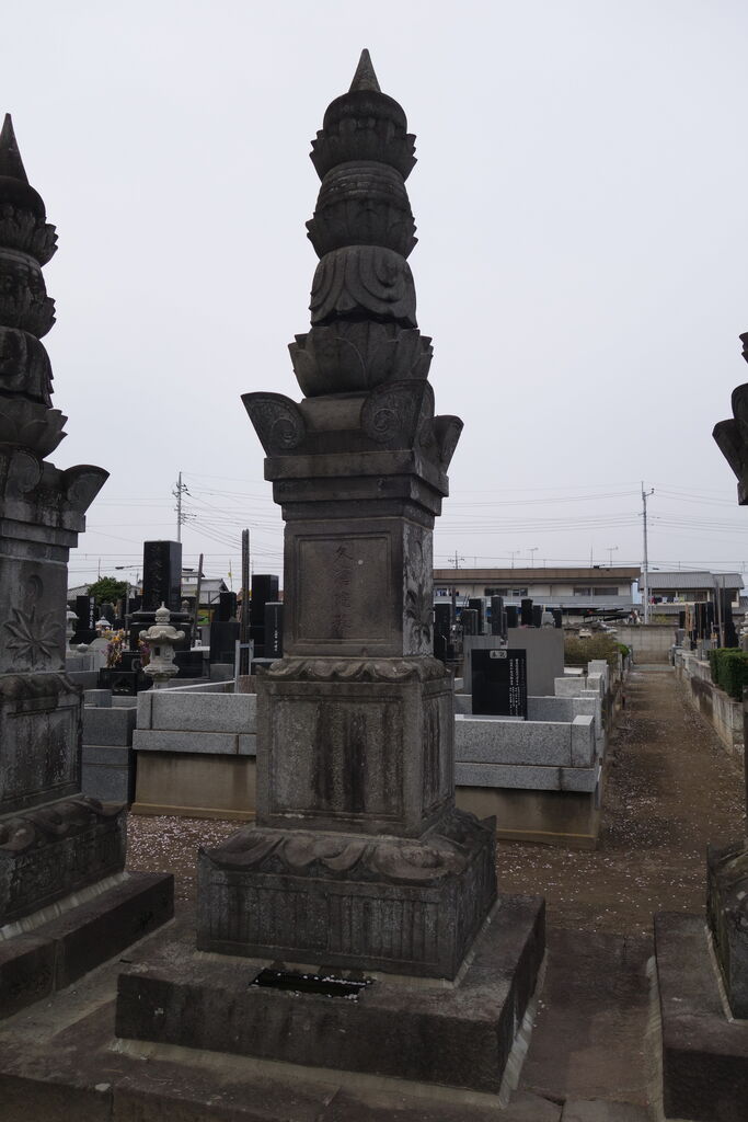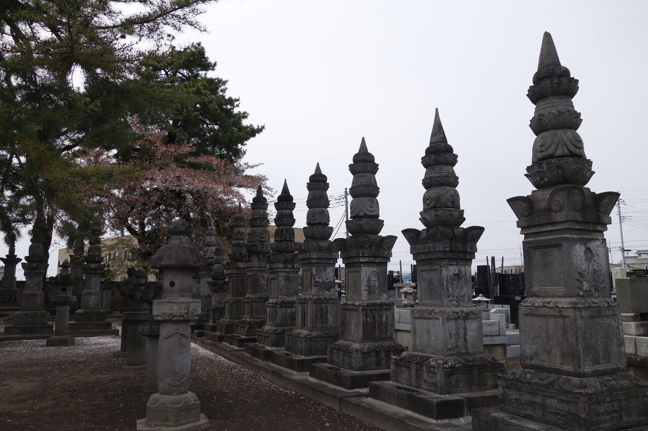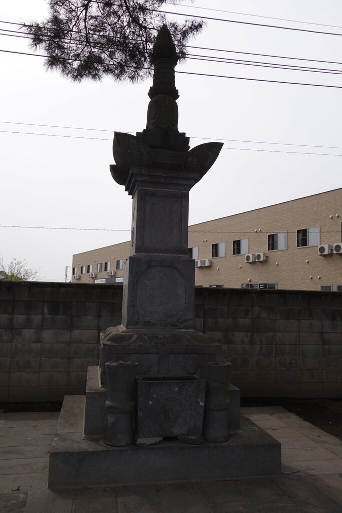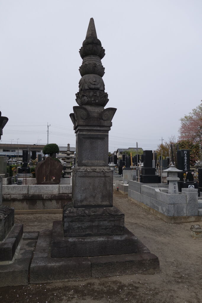 現在「天増寺殿快巌当慶居士」と法名を刻した宝篋印塔が墓地のほぼ正面に建っています。