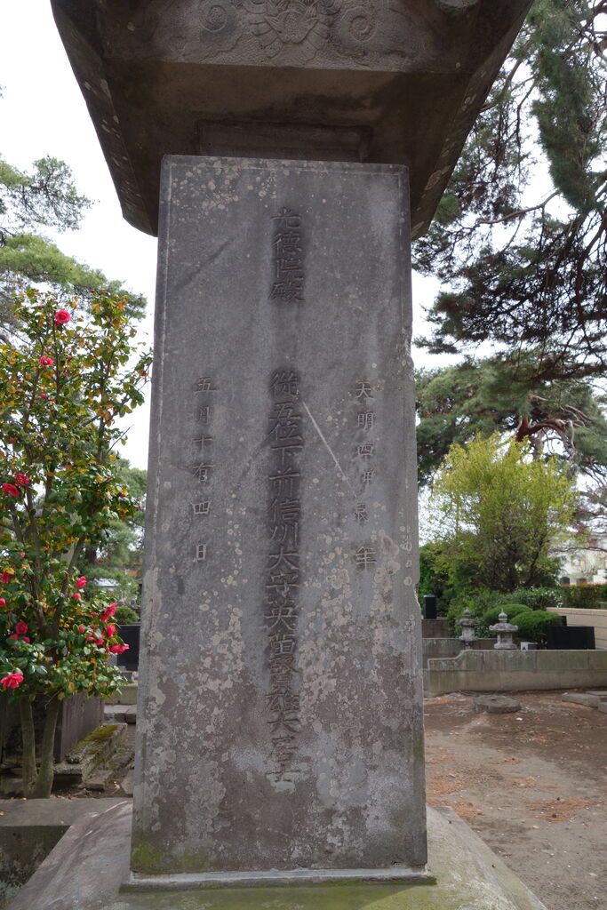 また、下植木の地 ( 現在の昭和町 ) に天増寺を建立して菩提寺と定め、その後、慶長 17年に没すると墓を天増寺に営みました。