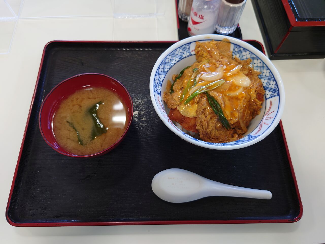 ⇧ かつ丼を注文 ( 630円 ) 食が細い僕としては「良い感じ」の量でした。