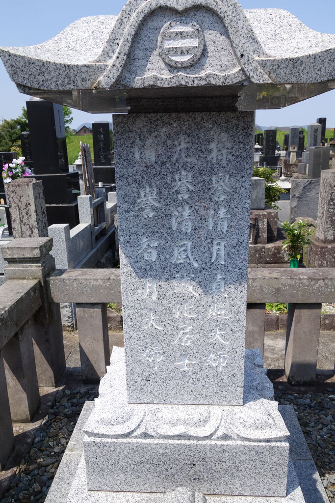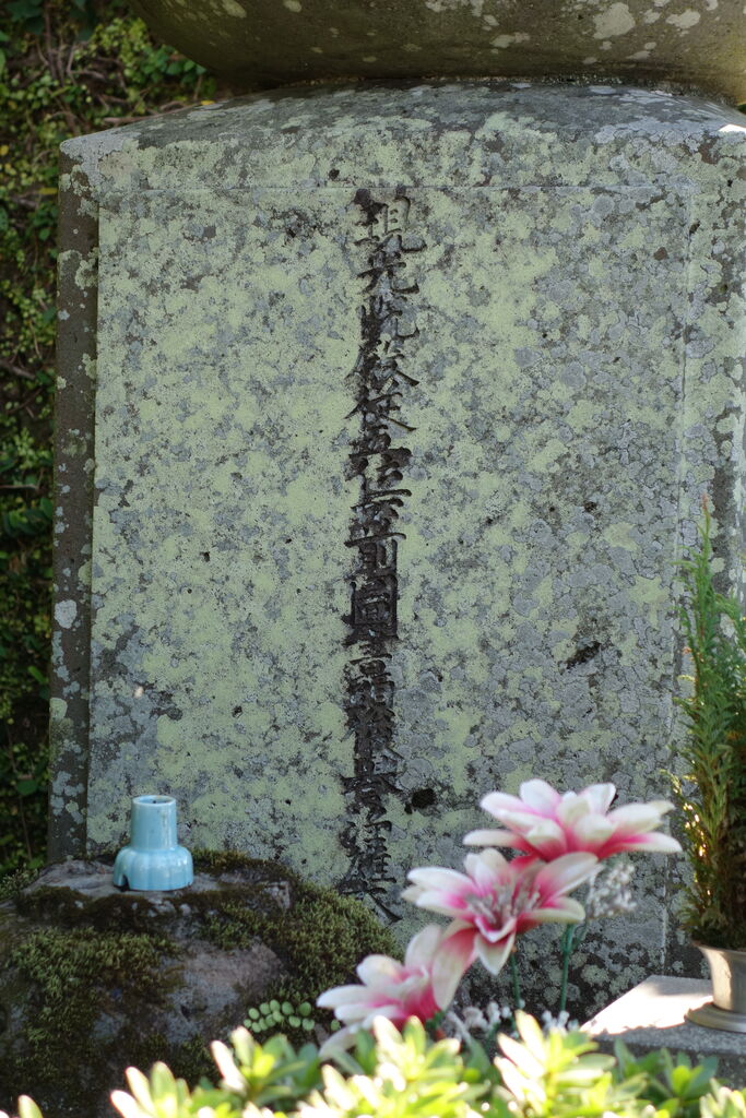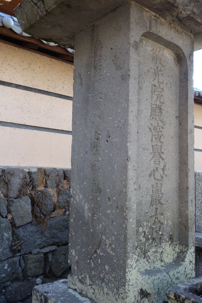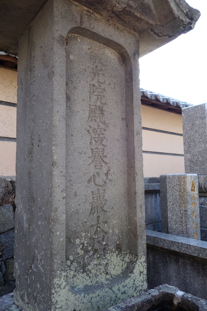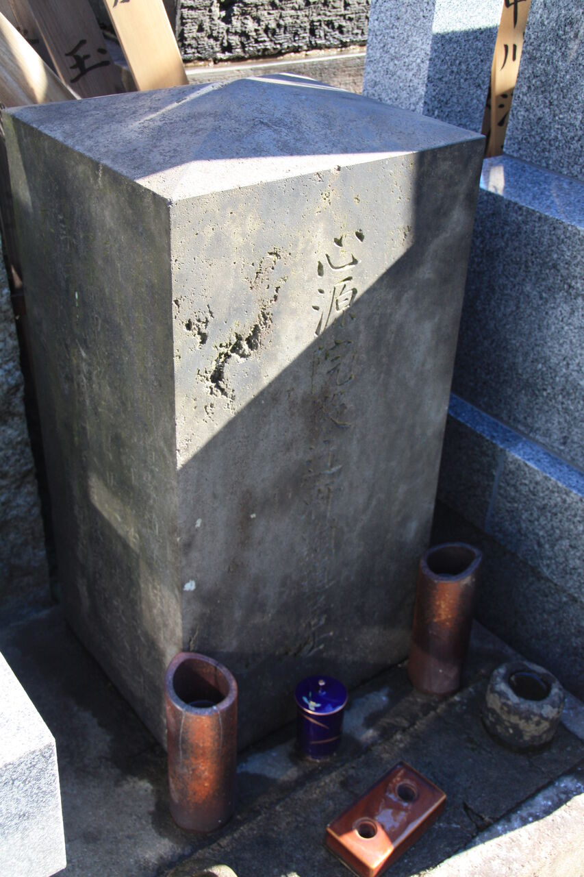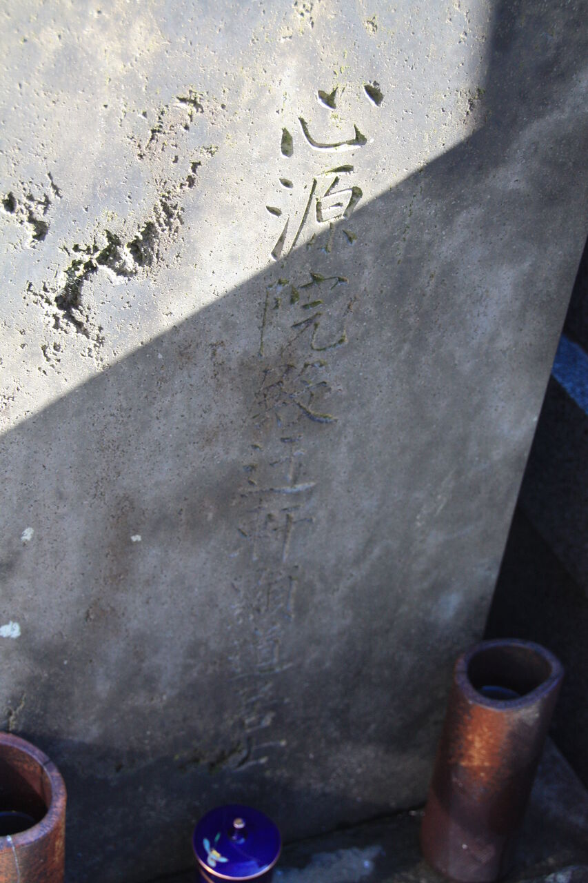 正面「心源院殿迂軒顕道居士」。