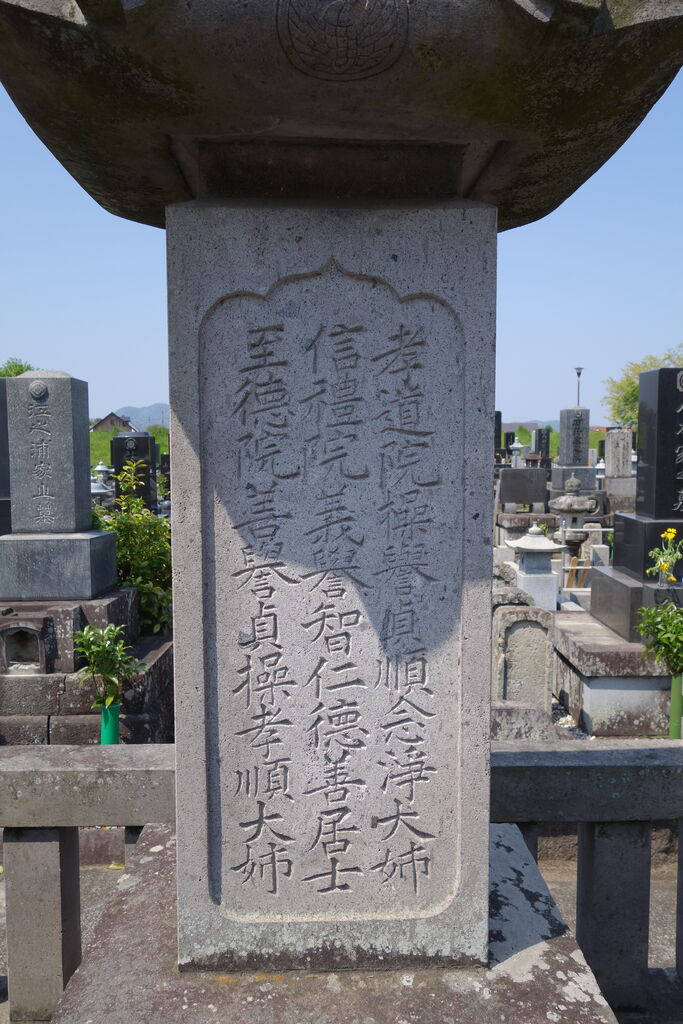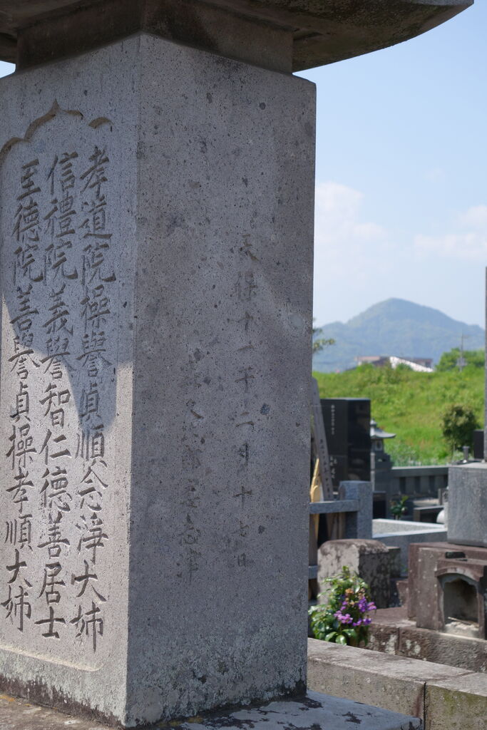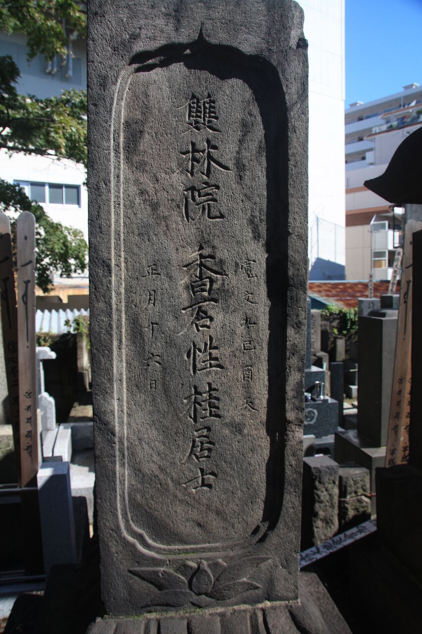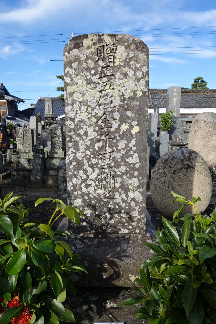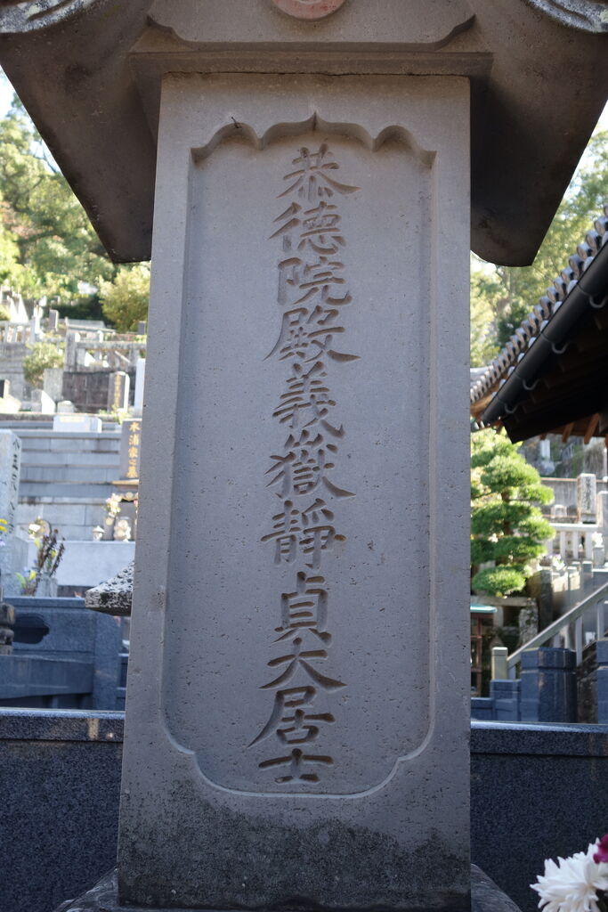 正面「心源院殿迂軒顕道居士」。