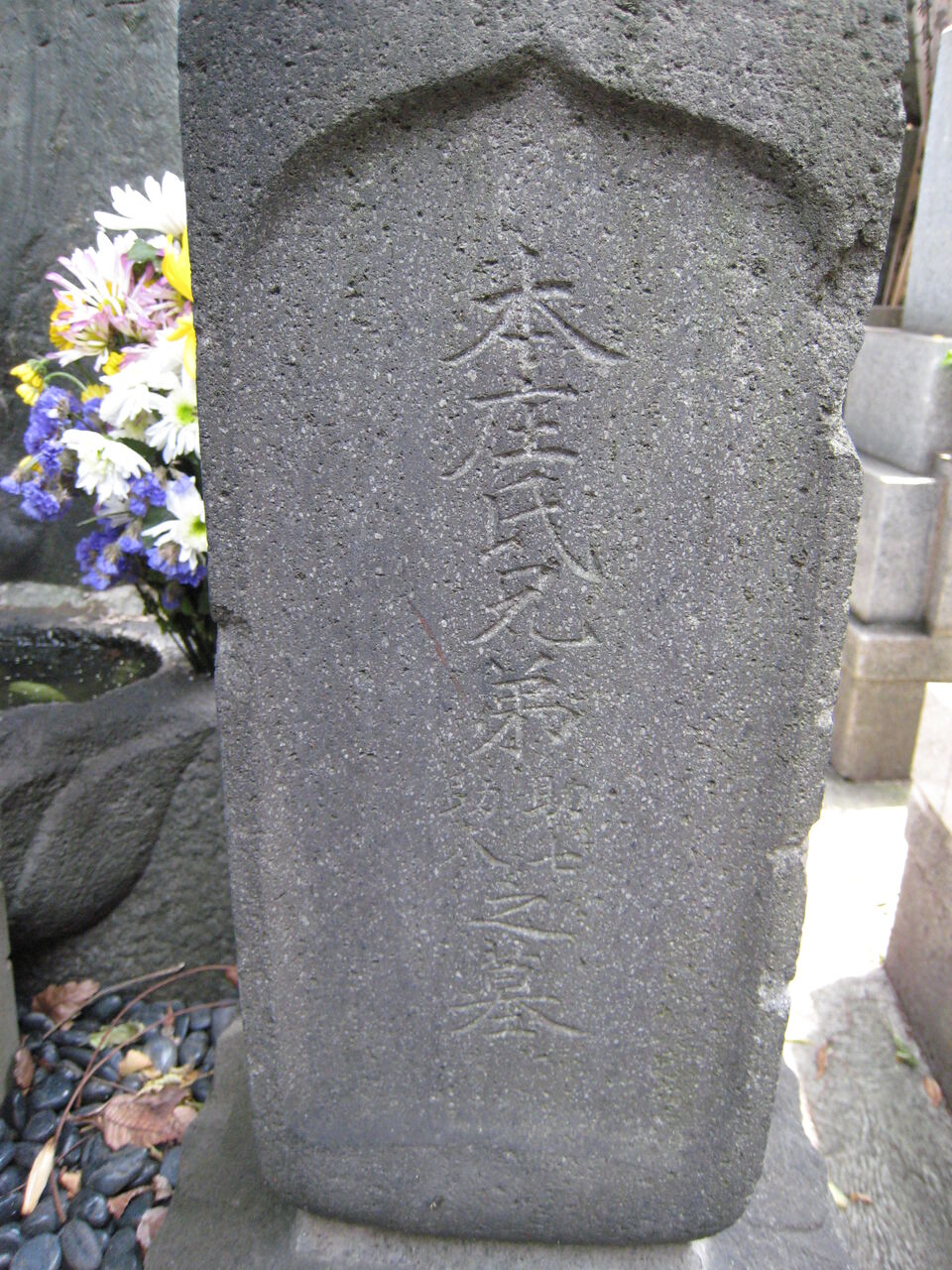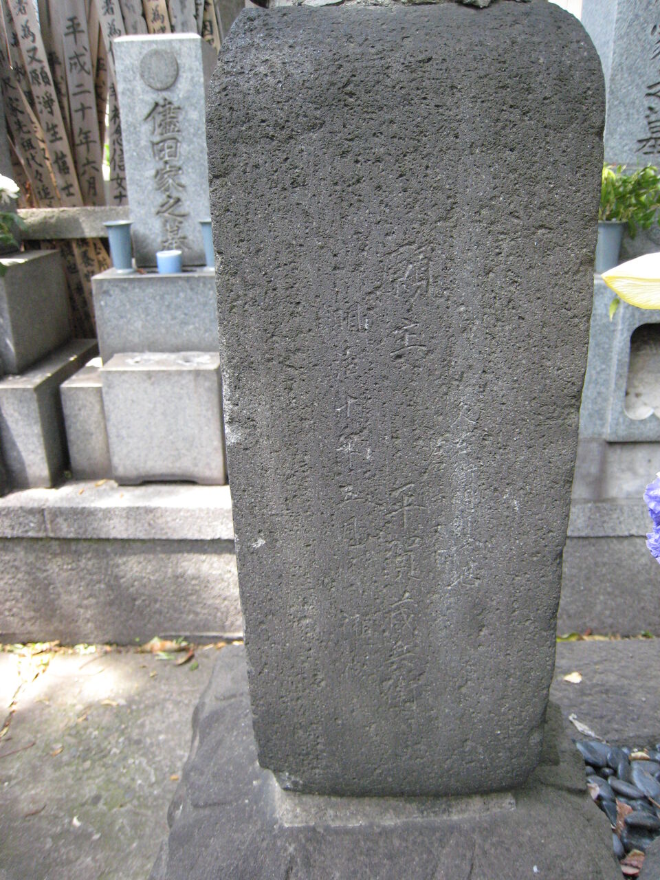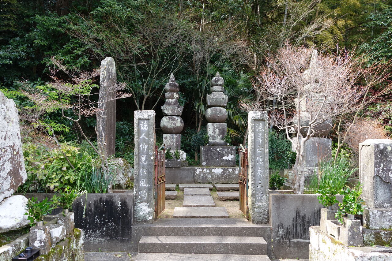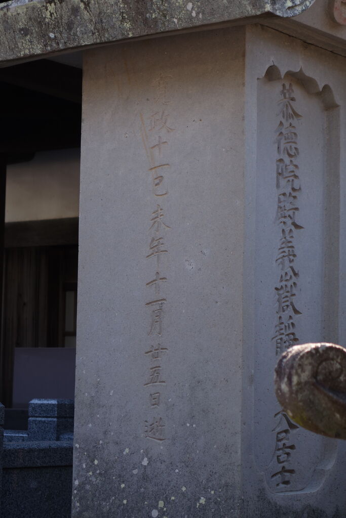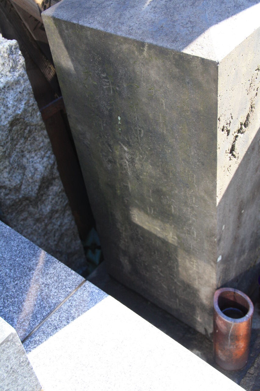 正面「心源院殿迂軒顕道居士」。