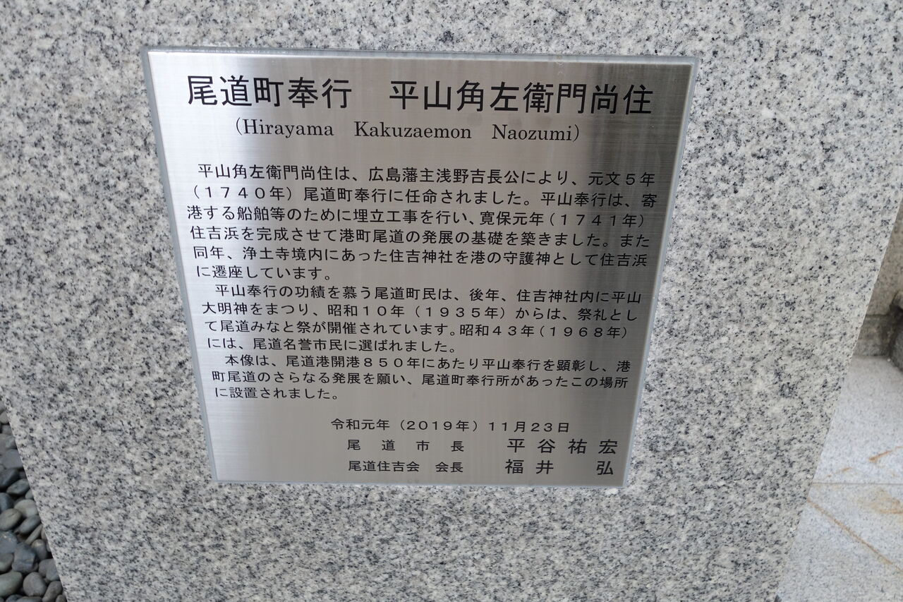 平山角左衛門尚住は、広島藩主・浅野吉長公により、元文 5年 ( 1740年 ) 尾道町奉行に任命されました。