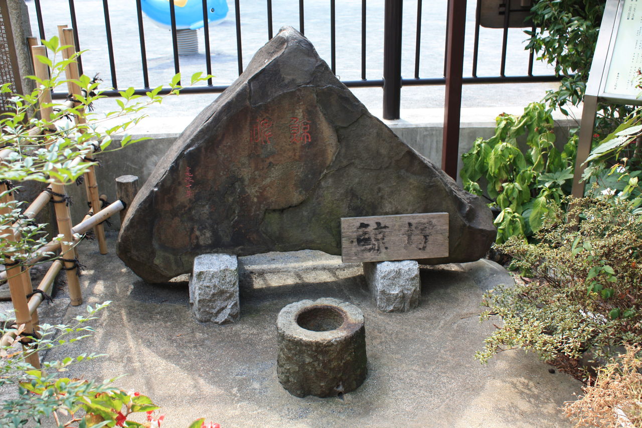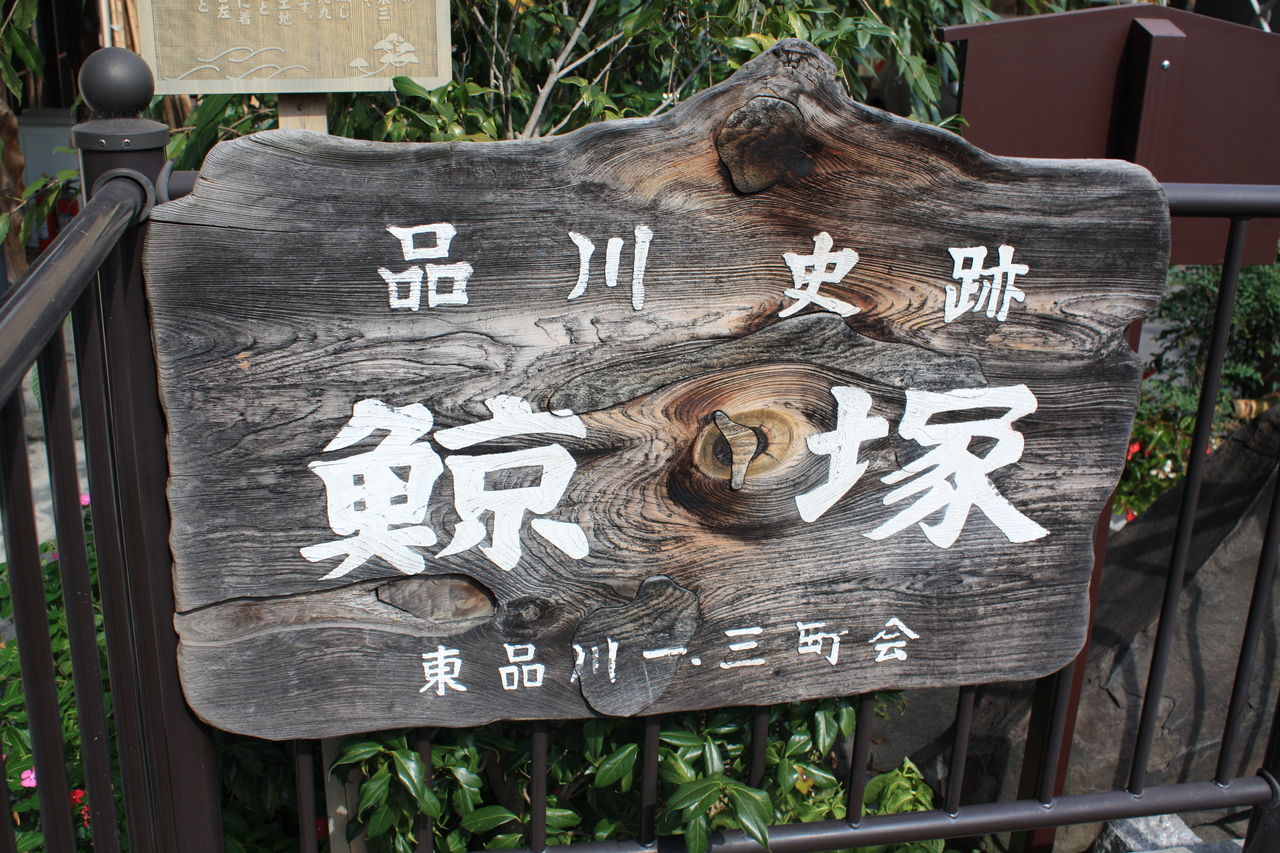 この鯨碑(鯨塚)は、寛政十年(一七九八)五月一日、前日からの暴風雨で品川沖に迷い込んだところを品川浦の漁師達によって捕らえられた鯨の供養碑である。