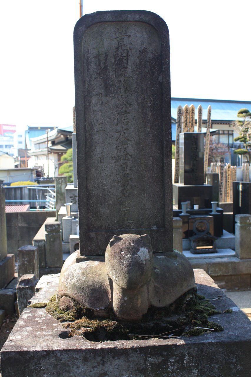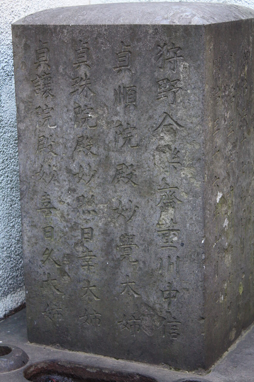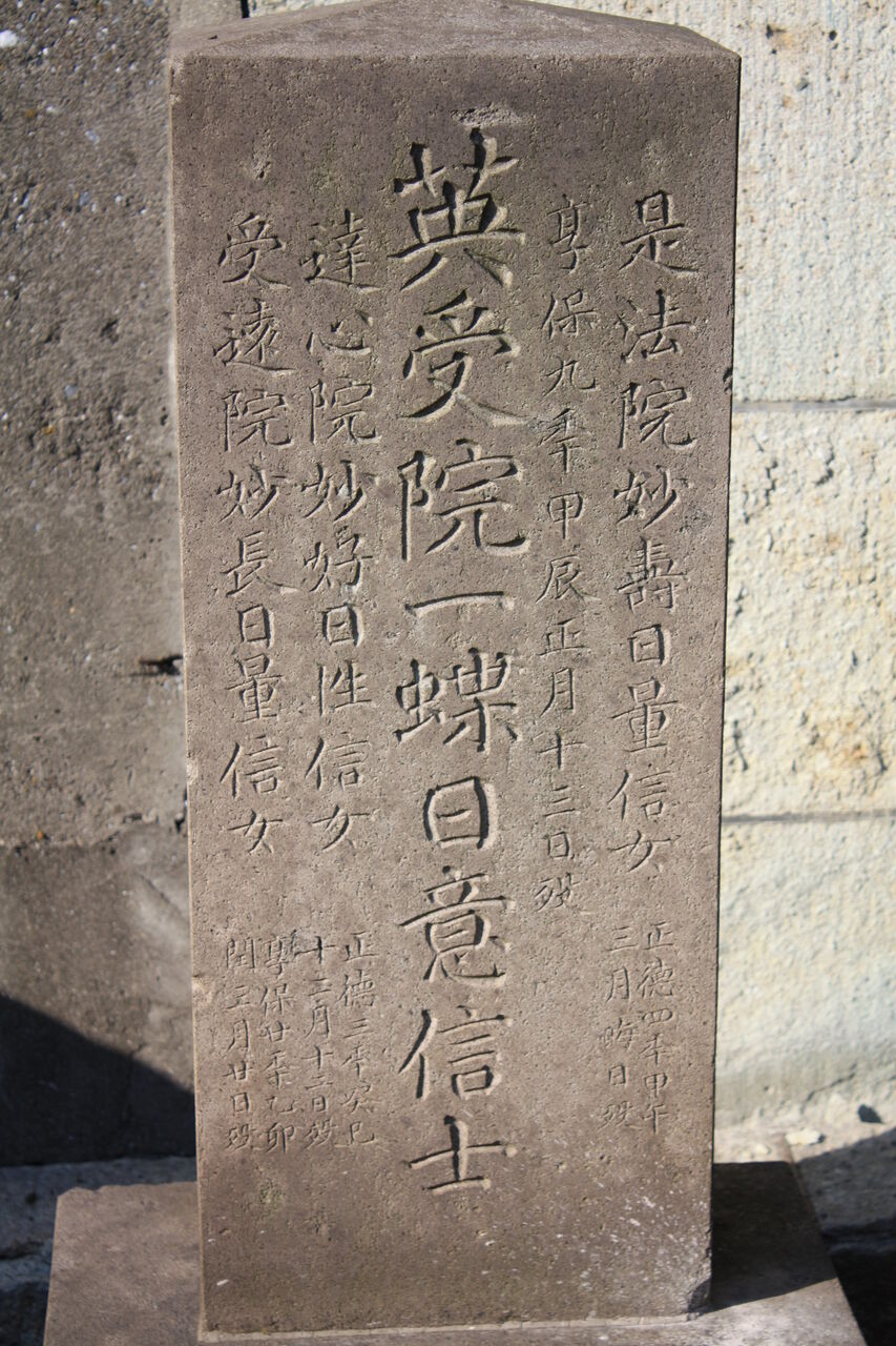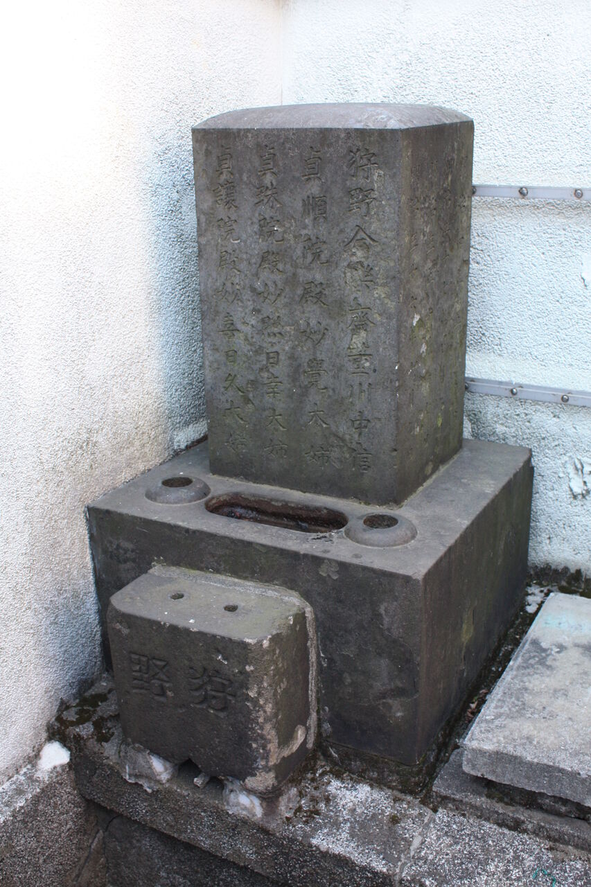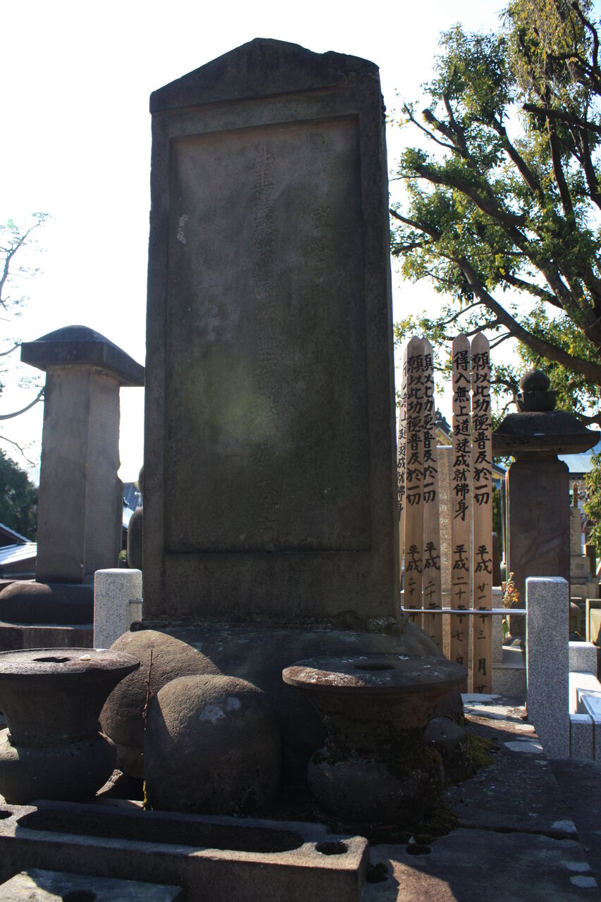 正面「至誠院殿真如学山居士 / 錦恕院殿貞房妙観大姉」。