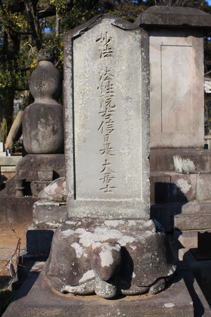 文政二年 ( 1819 ) 五十八歳で没し、浅草善照寺に葬られました。