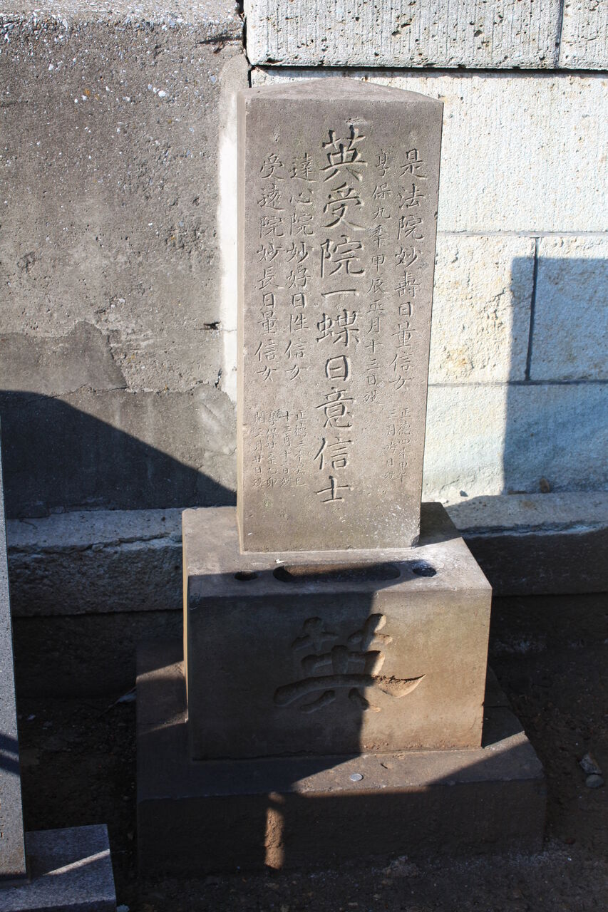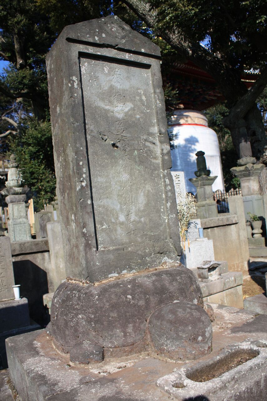 右の碑 ( 画像 ) は、文政八年 ( 1825 ) 春英七回忌に門人たちにより建立された顕彰碑です。