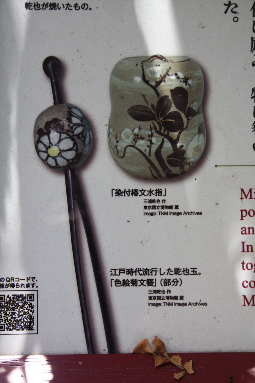明治 8年 ( 1875 )、54歳で向島長命寺に移り、境内の一隅に築窯し、根付、印籠、帯留めなどの捜索に励み、特に、簪 ( かんざし ) の珠は「乾也玉」の名で流行した。