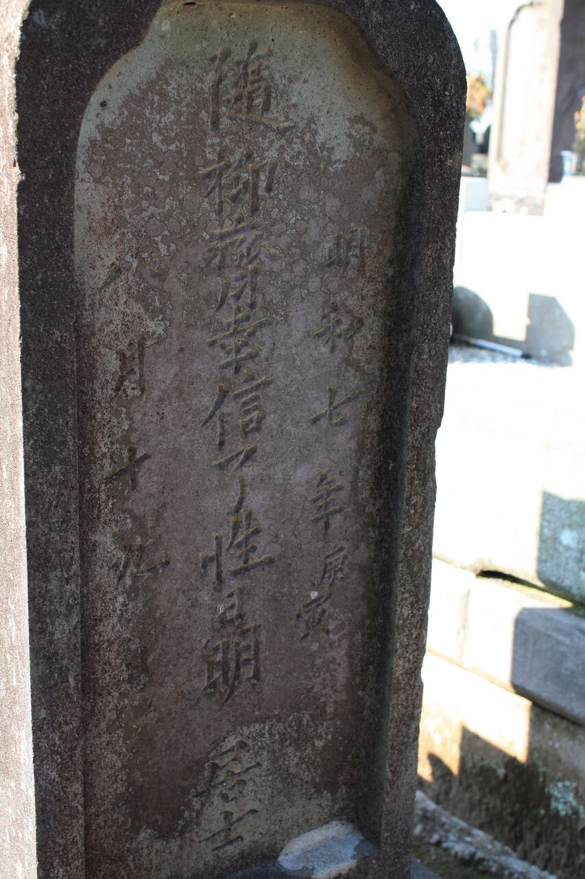 ※ 金田正誠 ( ? ~ 明治 30年 1月 29日 ) 墓は、了ごん寺墓地奥の塀際より 1本手前にある。