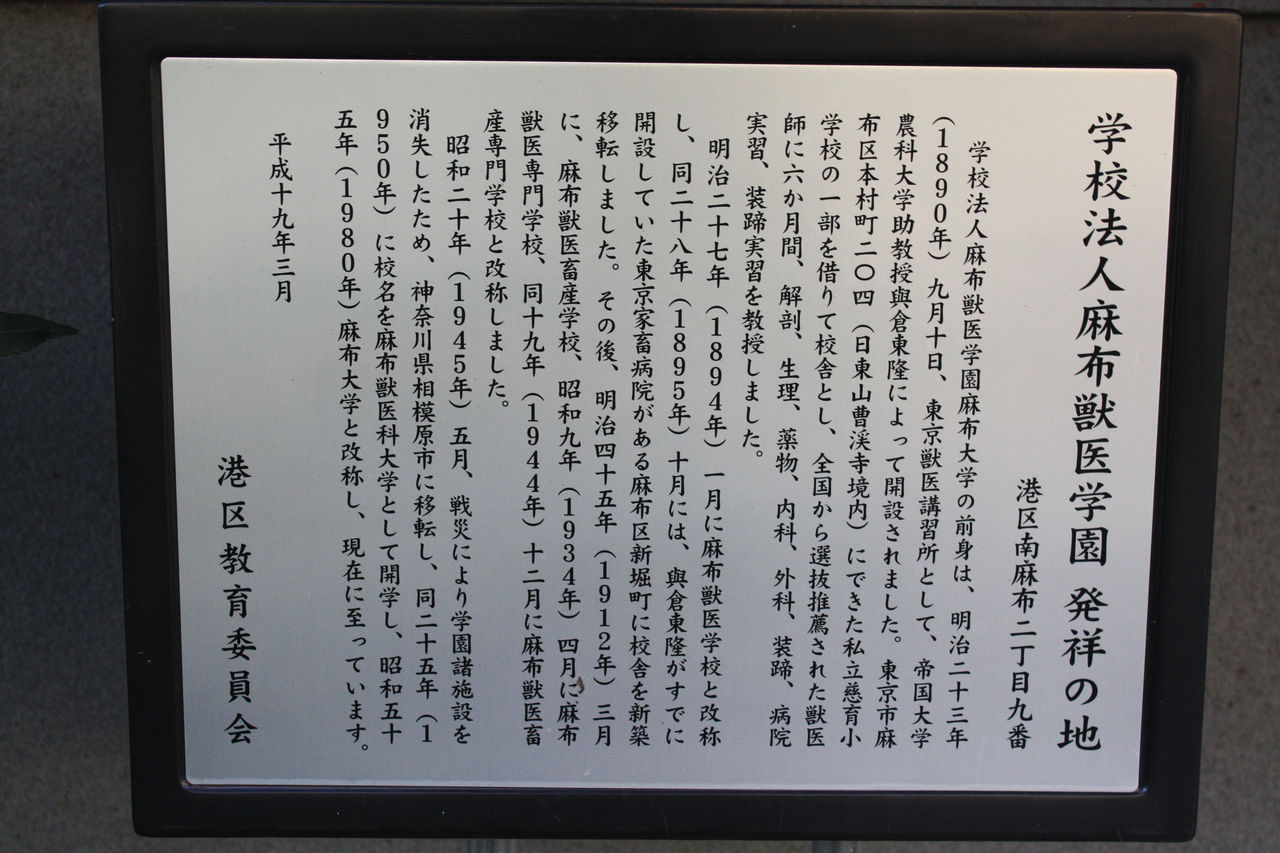 943 学校法人麻布獣医学園 発祥の地(港区南麻布二丁目九番)